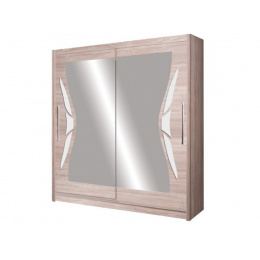DOME šatní skříň s posuvnými dveřmi hodící se ke stejnojmenné ložnici. Skříně se vyrábí i v šíři 200 cm. Barva provedení v dubu Sonoma v kombinaci s bílým leskem.