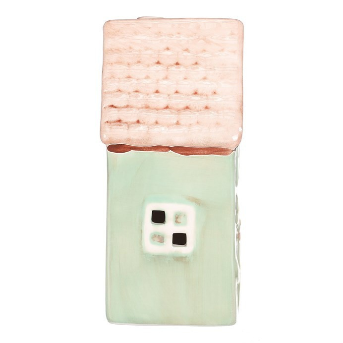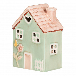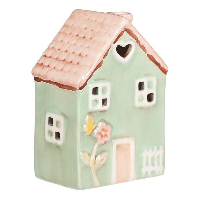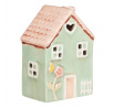 Domeček keramický - LED osvětlení, jarní styl, tm. zelený