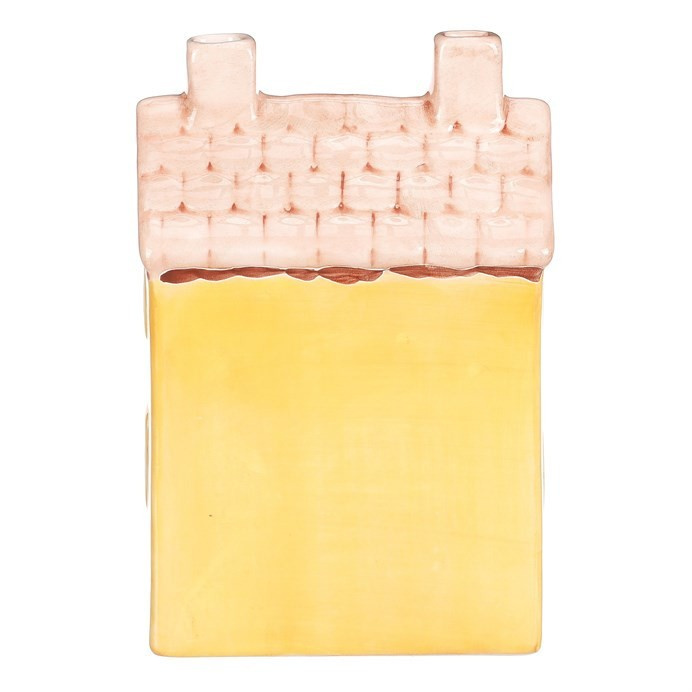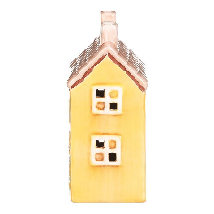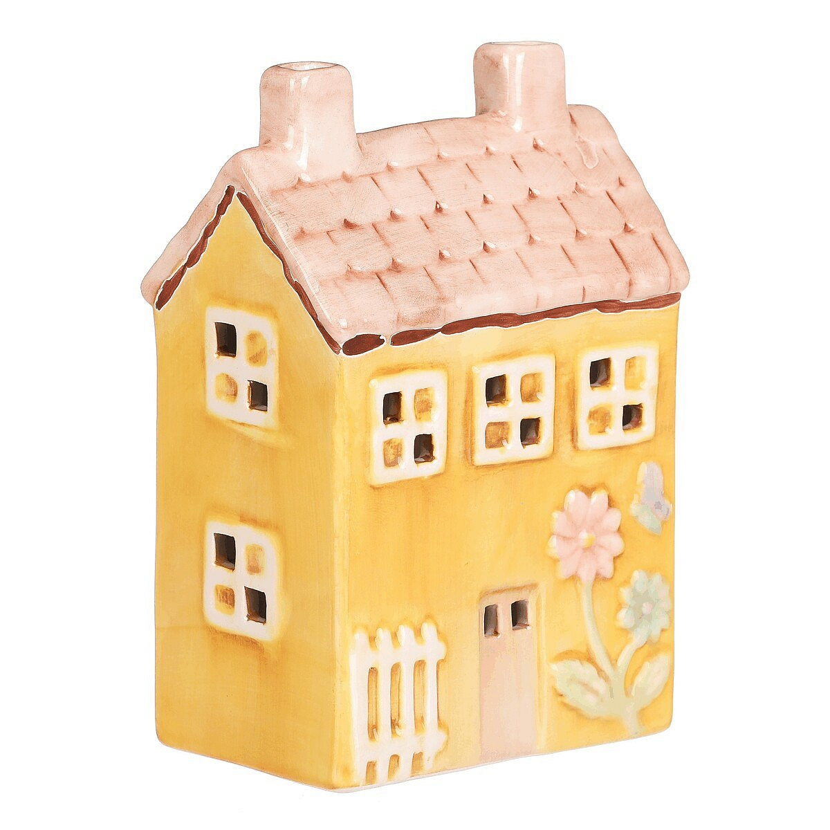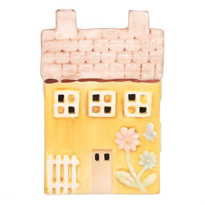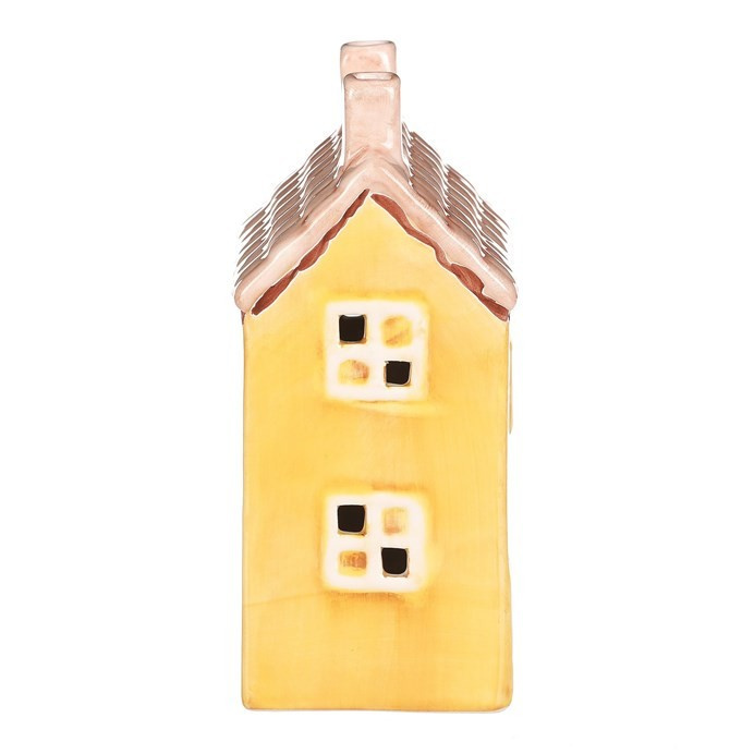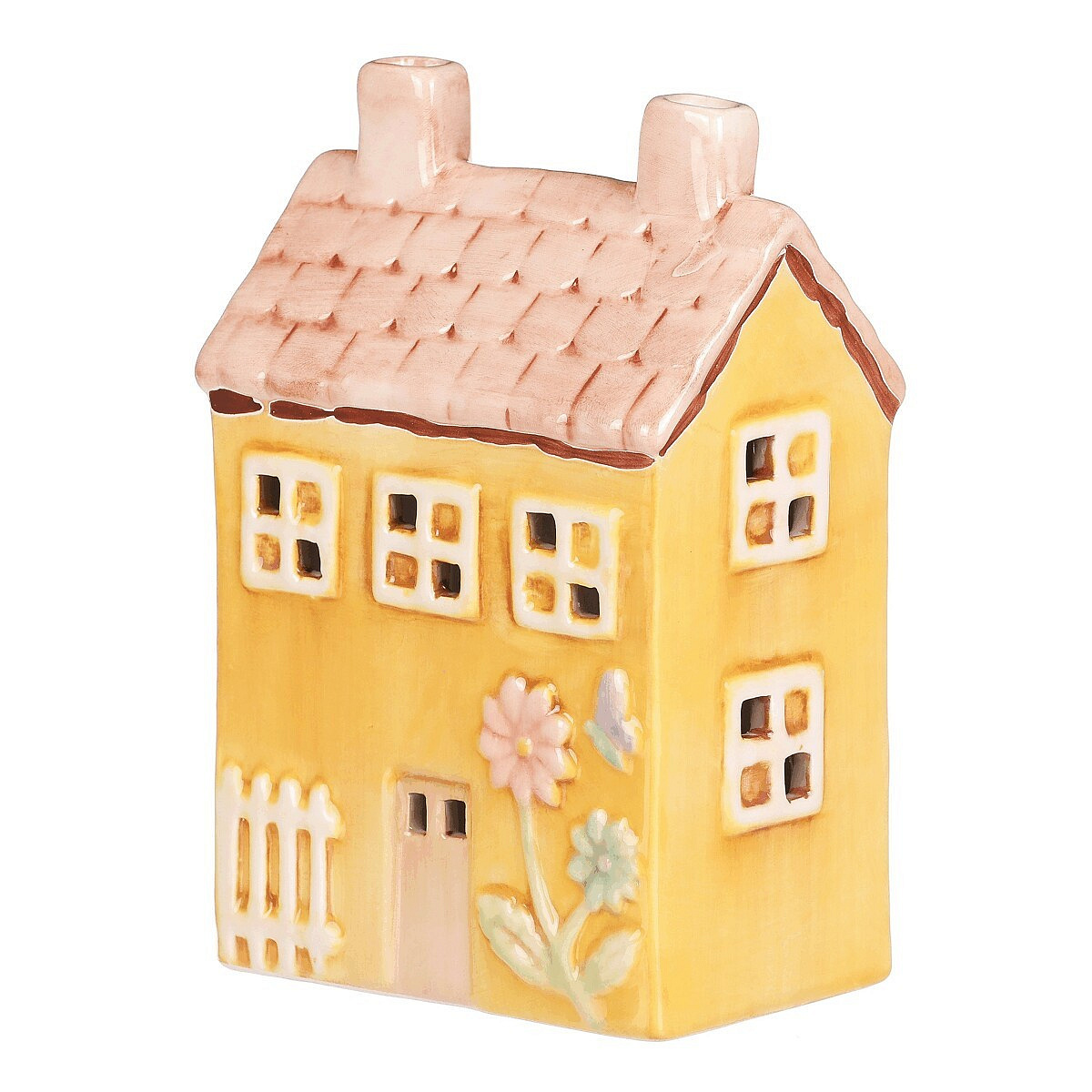 Žlutý keramický domek v jarním dekoru s růžovou střechou ozdobí interiér jemným světlem a přináší do prostoru klidnou atmosféru. Vybaven je LED osvětlením, které vykouzlí příjemnou záři. Je tak ideální pro večerní chvíle nebo jako dekorace sama o sobě, která rozjasní poličku, stůl či okenní parapet.
