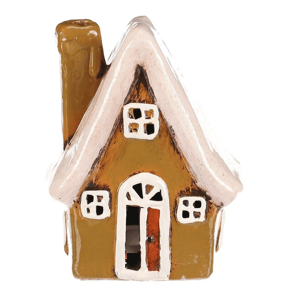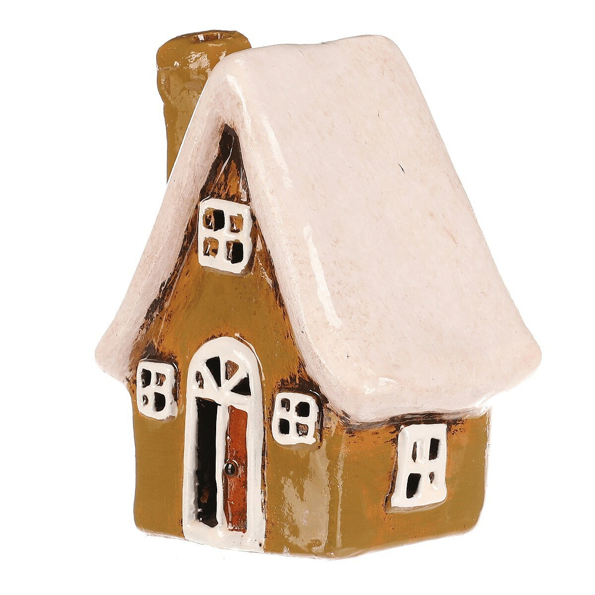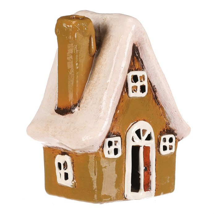 Keramický domek se stěnami v zelené barvě, bílými okny a bílou střechou je stylová dekorace na postavení, která se hodí pro podzimní i zimní výzdobu. Skvěle doplní sezónní aranžmá a vnese do interiéru příjemnější a veselejší atmosféru.