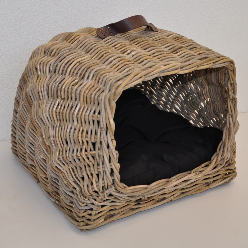 Pelíšek pro kočku je vyrobený z přírodního ratanu kubu v přírodní šedé barvě. | Krásný a bytelný pelíšek pro vašeho domácího mazlíčka. Barva ratanové konstrukce je přírodní šedá. Celková velikost je 50 x 53 x výška 40 cm. Velikost vhodového otvoru je 30x28 cm. Velikost vnitřího polštáře je 46x46 cm.