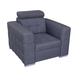 Křeslo Zara je skvělým doplňkem ke všem typům sedacích souprav Zara, které také najdete v naší nabídce. Můžete si ho objednat i jako samostatný soliter a získáte tak příjemného společníka k odpočinku, čtení, nebo sledování televize. Své uplatnění najde např. i v pracovně, hale nebo pokoji pro hosty. Křeslo je díky výplni z kvalitní PUR pěny v kombinaci s pružinami velmi pohodlné. Komfort a pohodlí při odpočinku zvyšuje polohovací opěrka hlavy. Křeslo je potaženo kvalitní potahovou látkou s kontrastním prošitím a můžete si k němu přikoupit jeden z taburetů Zara - viz. foto v doplňkových fotografiích.