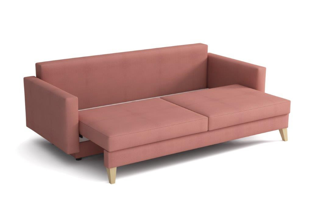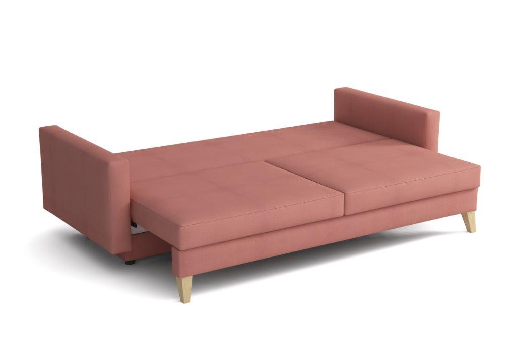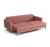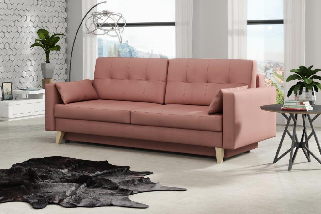 Pohovka Marina je krásným elegantním kouskem s nádechem RETRO designu a výborně zapadne do každého interiéru. Retro design podtrhují zešikmené dřevěné nohy a látkové knoflíky na opěrce. Pohovka je rozkládací a samozřejmostí je i nepostradatelný úložný prostor. Jednoduchým rozložením pomocí automatu vznikne dostatečně prostorné lůžko občasnému přespání Vaší návštěvy. Výpň sedáku tvoří vlnité pružiny v kombinaci s pružinami bonell a kvalitní PUR pěnou. Pohovka je celočalouněná, takže ji můžete umístit i do prostoru. Výborně se hodí do obývacího pokoje, do pracovny či pokoje pro hosty. Pohovku nabízíme v několika trendy barvách. Vyobrazené dopňky a dekorace nejsou v ceně. Zobrazení barev produktu na fotograii se může nepatrně lišit od skutečnosti.