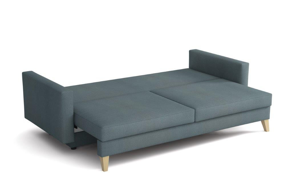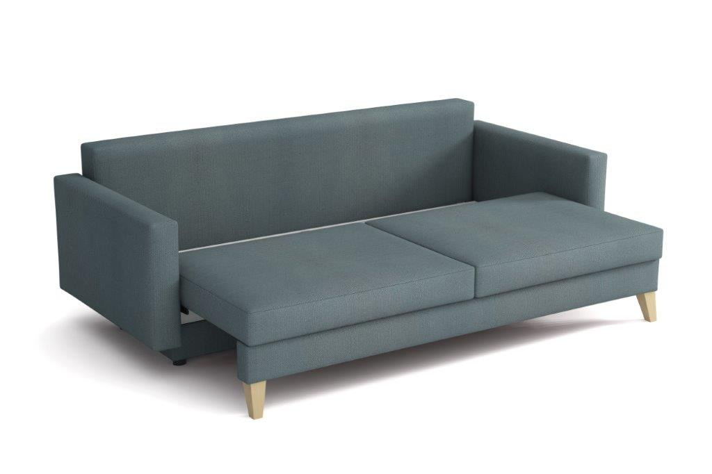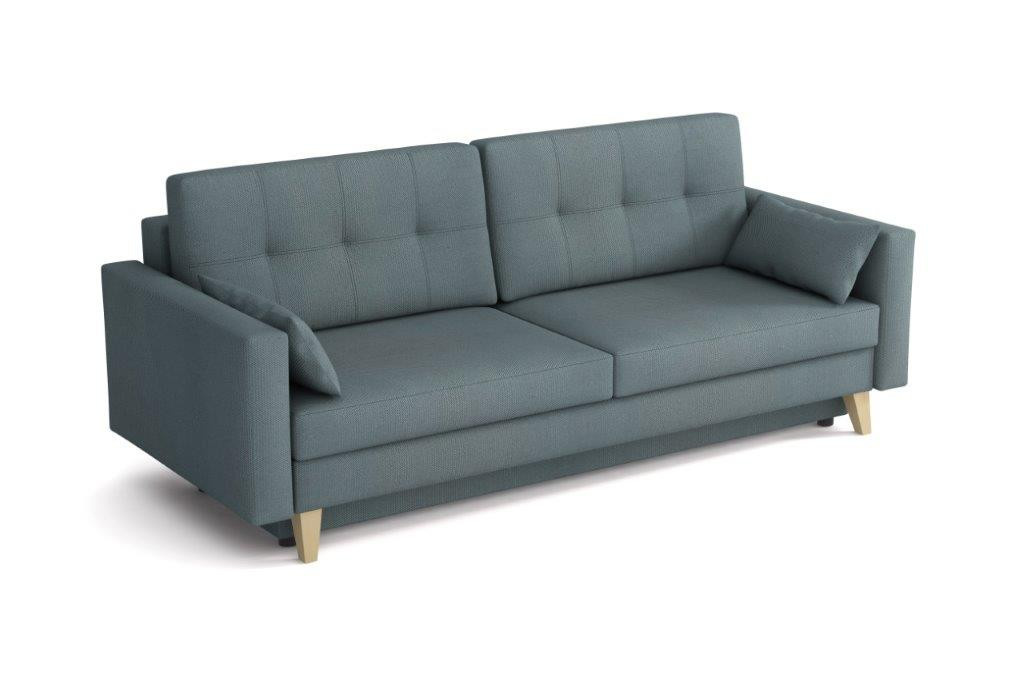 Pohovka Marina je krásným elegantním kouskem s nádechem RETRO designu a výborně zapadne do každého interiéru. Retro design podtrhují zešikmené dřevěné nohy a látkové knoflíky na opěrce. Pohovka je rozkládací a samozřejmostí je i nepostradatelný úložný prostor. Jednoduchým rozložením pomocí automatu vznikne dostatečně prostorné lůžko občasnému přespání Vaší návštěvy. Výpň sedáku tvoří vlnité pružiny v kombinaci s pružinami bonell a kvalitní PUR pěnou. Pohovka je celočalouněná, takže ji můžete umístit i do prostoru. Výborně se hodí do obývacího pokoje, do pracovny či pokoje pro hosty. Pohovku nabízíme v několika trendy barvách. Vyobrazené dopňky a dekorace nejsou v ceně. Zobrazení barev produktu na fotograii se může nepatrně lišit od skutečnosti.