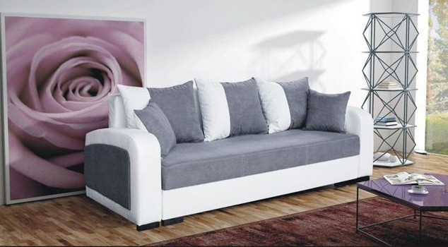 Pohovka Zara vyniká elegancí a pohodlím. Díky své jednoduché linii se hodí do každého prostoru. Originální vzhled dodává kombinace barev a materiálů. Pohovka je potažena velmi příjemnou látkou v kombinaci s EKO kůží. Pohovka je rozkládací a samozřejmostí je i praktický úložný prostor. Výplň sedáku tvoří kombinace pružin bonell s kvalitní PUR pěnou. Jednoduchým rozložením vznikne dostatečně velké lůžko k občasnému přespání. V ceně pohovky jsou tři velké opěrné polštáře a dva melé dekorační polštářky. Ostatní vyobrazené dekorace nejsou v ceně.