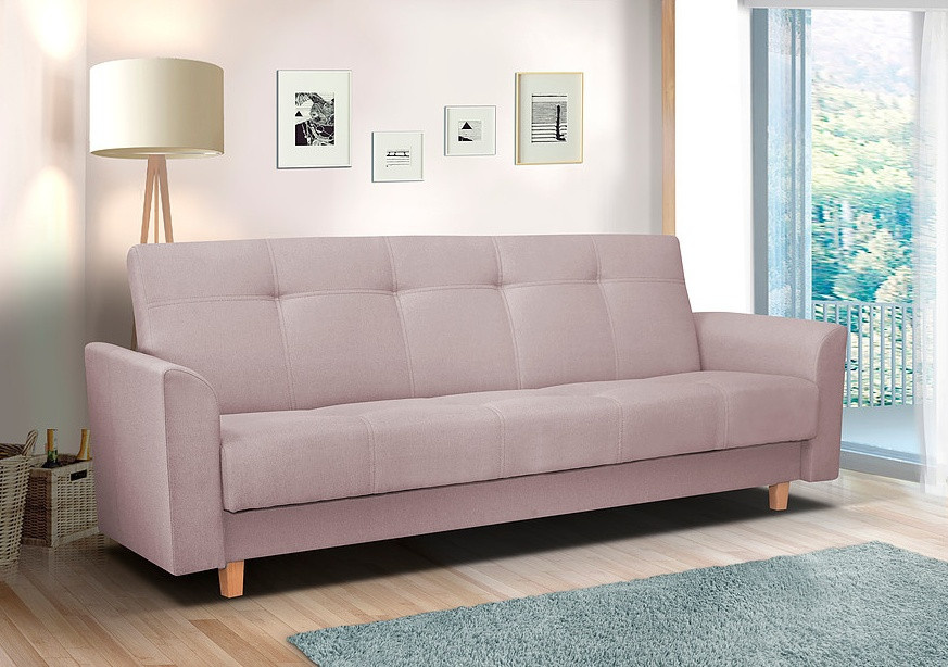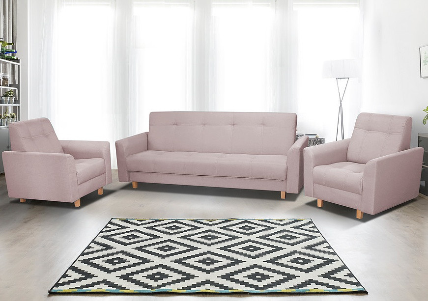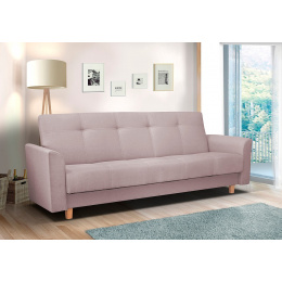 Pohovka Gala potěší milovníky Retro designu. Pohovka je rozkládací a samozřejmostí je i praktický úložný prostor. Retro styl podtrhují dřevěné nožky a prošití s vtahy. Je potažena látkou v pastelových barvách a můžete si vybrat ze 4 atraktivních odstínů. Tento typ nabízíme i v klasickém provedení 3R+1+1. Najdete ji v kategorii sedací soupravy 3+1+1. Výplň sedáku tvoří kombinace pružin bonell s kvalitní PUR pěnou. Jednoduchým rozložením pomocí systému klik-klak vznikne lůžko k občasnému přespání. Vyobrazené dekorace nejsou v ceně.