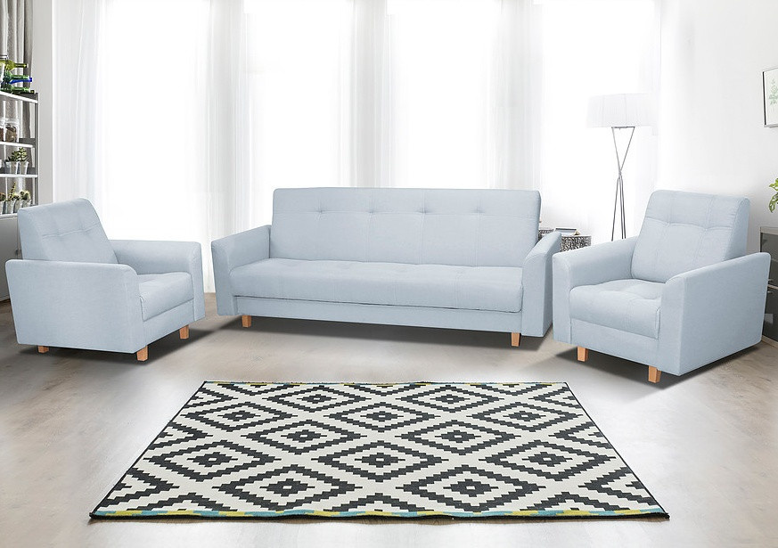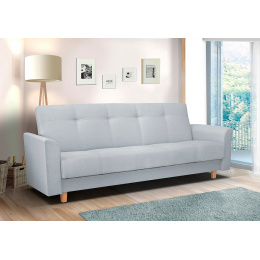 Pohovka Gala potěší milovníky Retro designu. Pohovka je rozkládací a samozřejmostí je i praktický úložný prostor. Retro styl podtrhují dřevěné nožky a prošití s vtahy. Je potažena látkou v pastelových barvách a můžete si vybrat ze 4 atraktivních odstínů. Tento typ nabízíme i v klasickém provedení 3R+1+1. Najdete ji v kategorii sedací soupravy 3+1+1. Výplň sedáku tvoří kombinace pružin bonell s kvalitní PUR pěnou. Jednoduchým rozložením pomocí systému klik-klak vznikne lůžko k občasnému přespání. Vyobrazené dekorace nejsou v ceně.