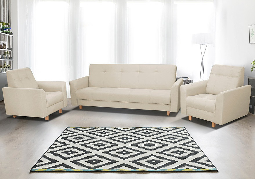 Sedací souprava Gala potěší milovníky Retro designu. Pohovka je rozkládací a samozřejmostí je i praktický úložný prostor. Retro styl podtrhují dřevěné nožky a prošití s vtahy. Je potažena látkou v pastelových barvách a můžete si vybrat ze 4 atraktivních odstínů. Výplň sedáku tvoří kombinace pružin bonell s kvalitní PUR pěnou. Jednoduchým rozložením pomocí systému klik-klak vznikne lůžko k občasnému přespání. Vyobrazené dekorace nejsou v ceně.