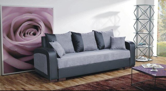 Pohovka Zara vyniká elegancí a pohodlím. Díky své jednoduché linii se hodí do každého prostoru. Originální vzhled dodává kombinace barev a materiálů. Pohovka je potažena velmi příjemnou látkou v kombinaci s EKO kůží. Pohovka je rozkládací a samozřejmostí je i praktický úložný prostor. Výplň sedáku tvoří kombinace pružin bonell s kvalitní PUR pěnou. Jednoduchým rozložením vznikne dostatečně velké lůžko k občasnému přespání. V ceně pohovky jsou tři velké opěrné polštáře a dva melé dekorační polštářky. Ostatní vyobrazené dekorace nejsou v ceně.