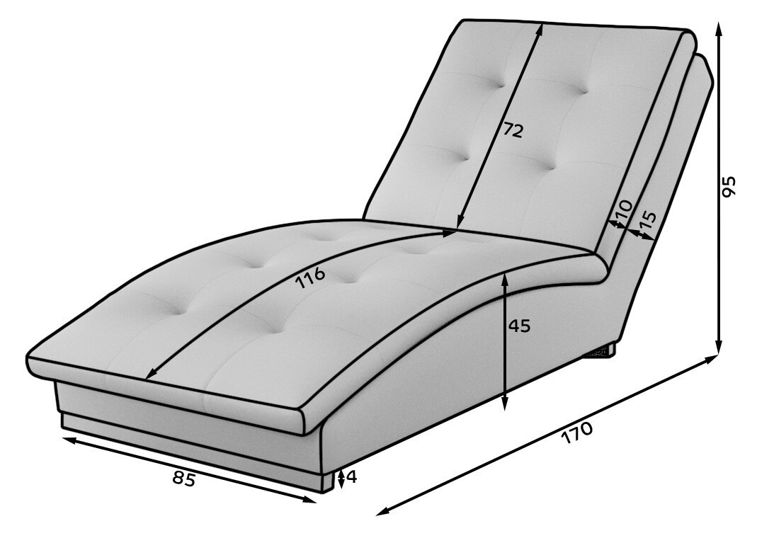 Pohodlná lenoška Doro nabízí ideální místo k sezení pro jakoukoliv příležitost díky svému modernímu, elegantnímu designu s čistými liniemi a stylovým prošíváním. Dalšími vlastnostmi tohoto kusu nábytku jsou jeho zakřivené sedadlo a klenutá opěrka zad. Doro je ideálním doplňkem do ložnice nebo obývacího pokoje. Lehátko může být použito jako samostatný kus nábytku, protože má čalouněné opěradlo, takže vypadá krásně z obou stran. Doro je čalouněný kus nábytku, který je dostatečně dlouhý na to, abyste si na něj mohli lehnout a pohodlně podepřít nohy, protože je hluboký až 170 centimetrů. Další rozměry jsou: 85x95 cm. HR pěna v sedáku a opěradle Doro je vysoce flexibilní, vysoce kvalitní náplň pro nábytek. Odpočinek s HR pěnou znamená mnohem větší pohodlí při sezení a zdravé zarovnání těla. Díky své jedinečné buněčné struktuře nabízí HR pěna dostatečnou pevnost v tahu a díky zvýšené elasticitě se výborně přizpůsobuje tělu. Lehátko je k dispozici v mnoha látkách z kolekce ELTAP.