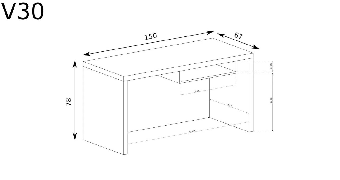 Velký psací stůl z kolekce Vegas. Má jednu výsuvnou polici, ideální pro klávesnici nebo nejdůležitější dokumenty. Hodí se jak do obývacího pokoje, tak do pracovny nebo kanceláře. Díky jeho jednoduchému designu s ním můžete vytvořit mnoho uspořádání nebo ho použít jako toaletní stolek.