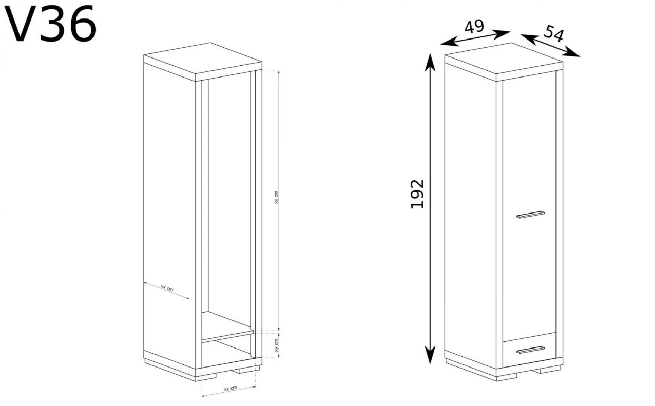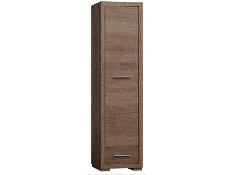 Jednodveřová šatní skříň z kolekce Vegas. Uprostřed má tyč, která umožňuje vyplnit volný prostor skříně. Pod ní se nachází malá zásuvka na drobnější doplňky. Šatní skříň se hodí do mnoha sestav, zapadne do každého koutu a vnese do místnosti příjemnou atmosféru. Kovové úchytky podtrhují pevnost nábytku.