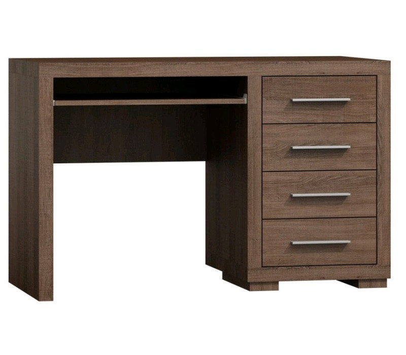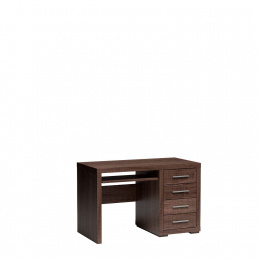 Psací stůl z kolekce Vegas. Má čtyři zásuvky, které pojmou mnoho dokumentů, pomůcek nebo knih. Výsuvná police je ideální pro uložení klávesnice nebo nejnutnějších věcí. Kovové úchytky podtrhují pevnost a charakter nábytku. Stůl usnadňuje organizaci, hodí se do kanceláře, pracovny, ale také do obývacího pokoje nebo ložnice. Můžete s ním vytvořit mnoho uspořádání, lze jej použít i jako toaletní stolek.