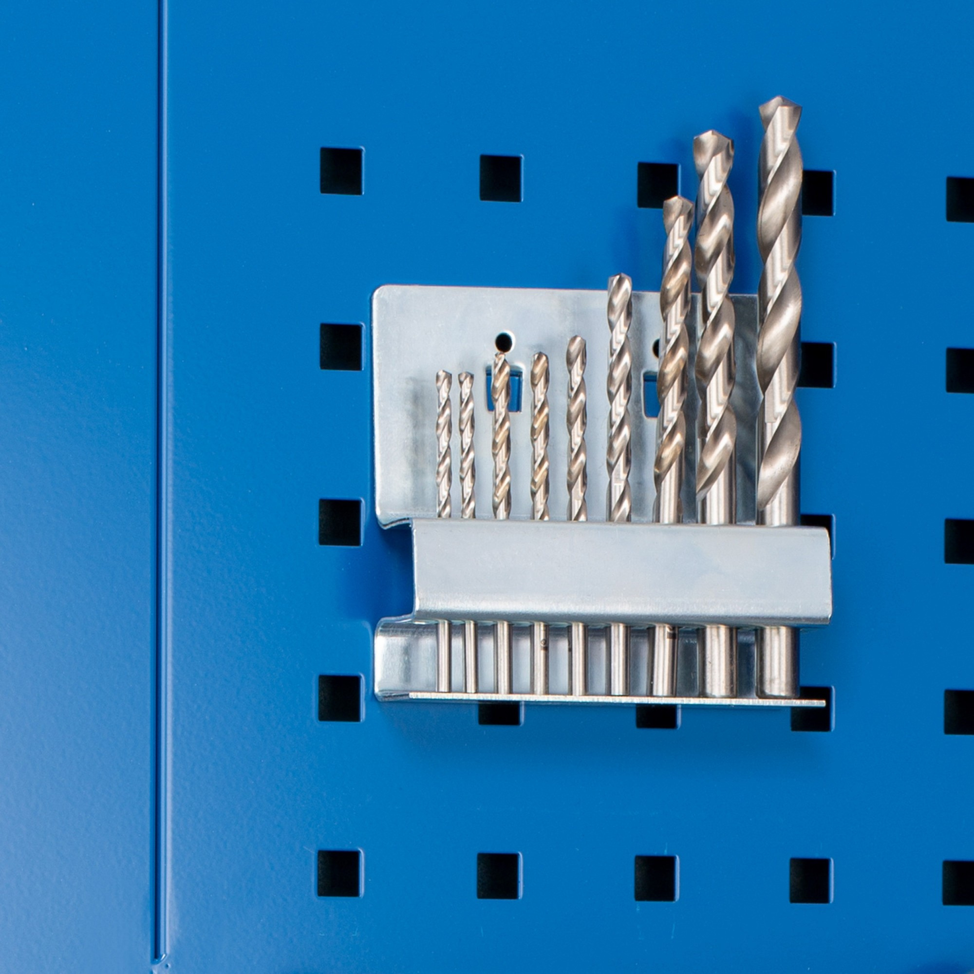 - Snadná instalace: Držák lze snadno zavěsit ve skříních dílen BRUNO, DAREK a SZYMON, nebo na jakékoli jiné vhodné místo.