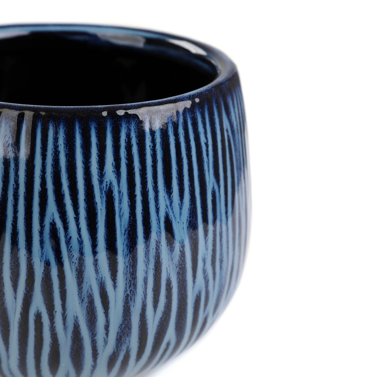 Vyznačuje se jemně zaobleným tvarem a lesklým, hladkým povrchem. Je zdoben nepravidelným vzorem modrých čar, který se dokonale mísí s tmavě modrým pozadím.Účel