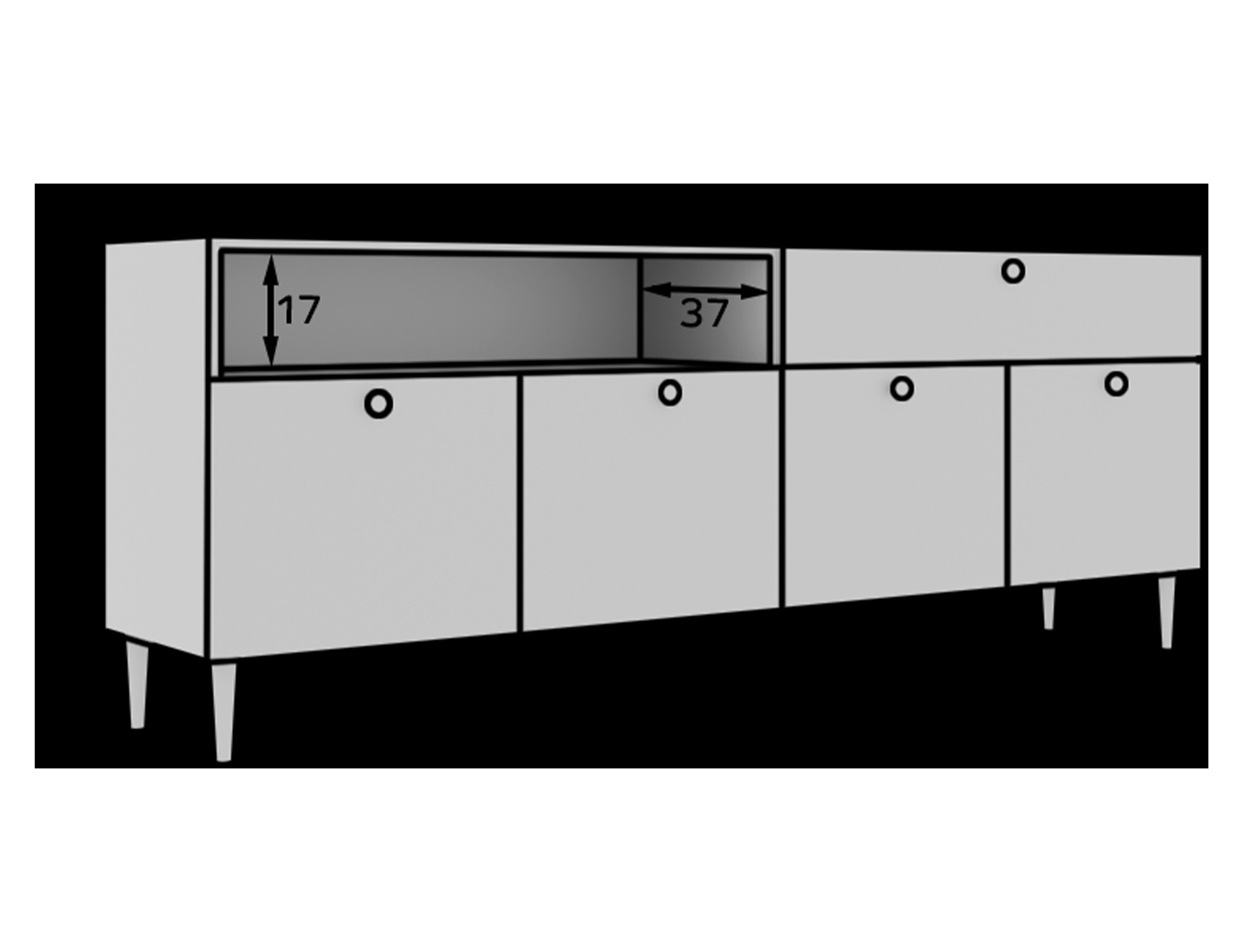 Dullum příborník je elegantní a praktický kus nábytku s rozměry 40 cm do hloubky, 200 cm do šířky a 75 cm do výšky. Tloušťka desky je 16 mm, což zajišťuje pevnou a odolnou konstrukci. Je vybaven vodicí lištou s kuličkovými ložisky, která umožňuje plynulý a spolehlivý chod zásuvky. Nosnost každé skříňky je 3 kg, což ji činí vhodnou pro ukládání různých předmětů při zachování stability a funkčnosti.