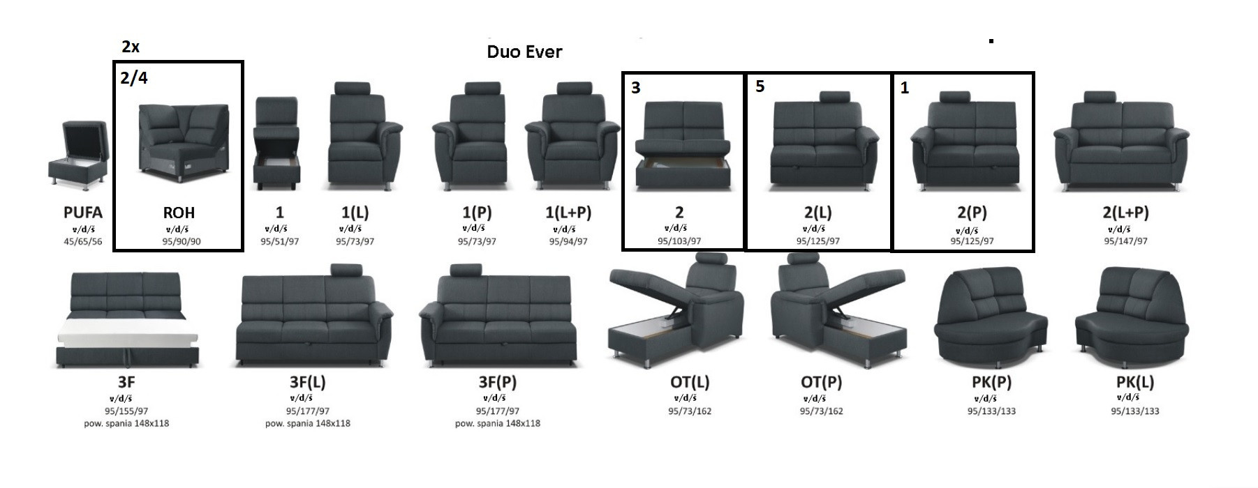 DUO EVER - rohová sedací souprava 2P - R - 2 - R - 2L