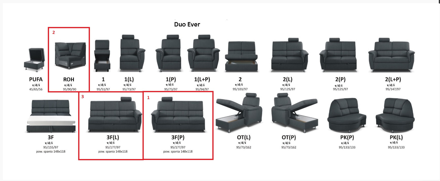 na obrázku DUO EVER 3F(P)-R-3F(L) modulová rohová sedací souprava.
