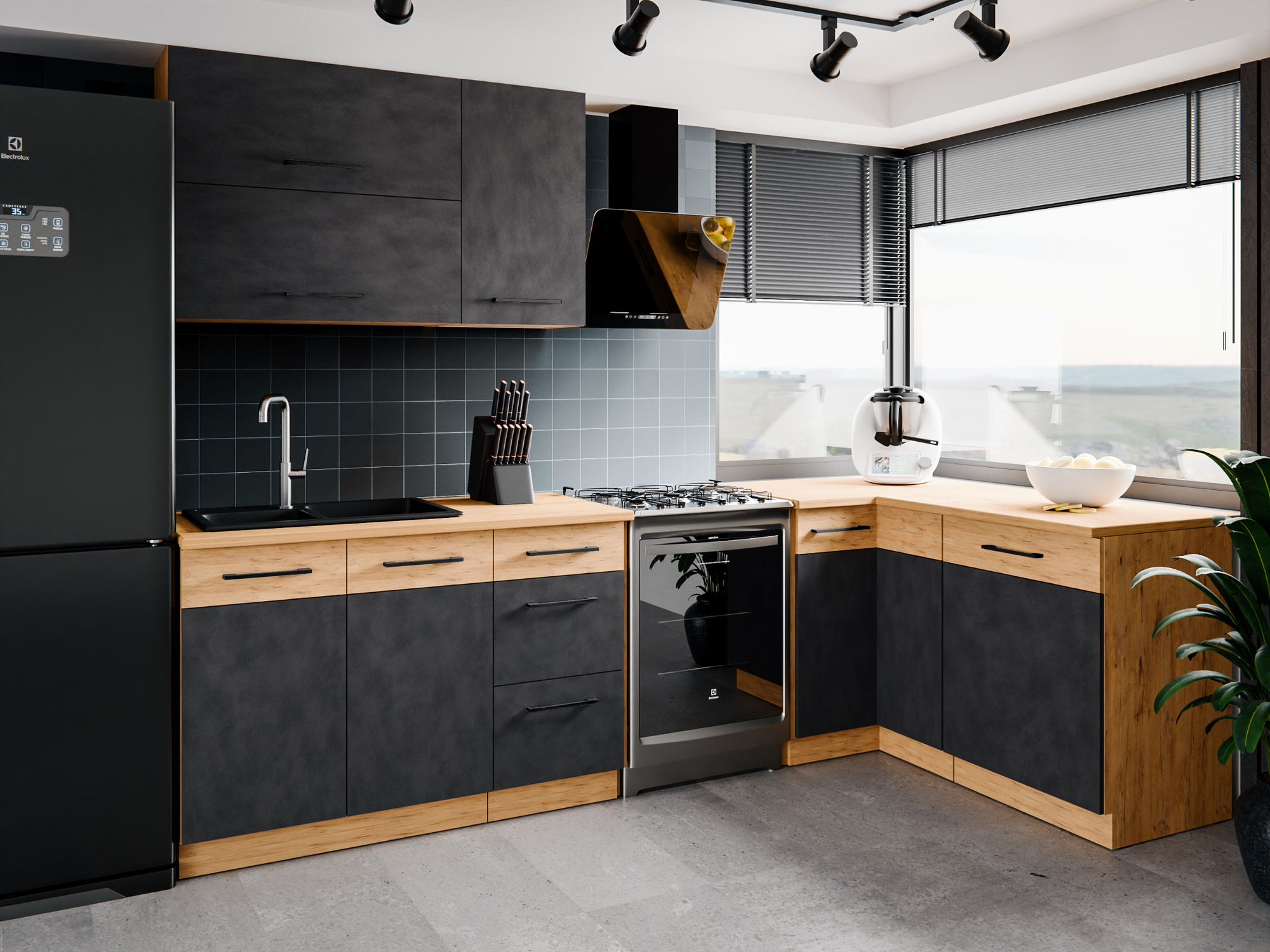 - Kuchyně ARONA - Černý mat/Kašmír