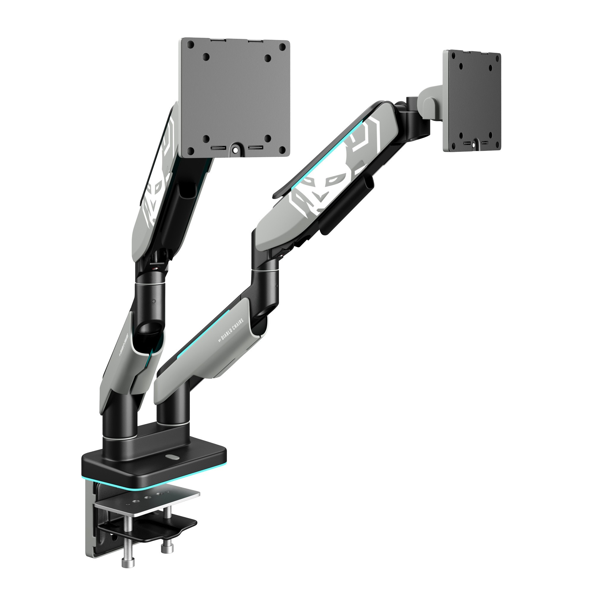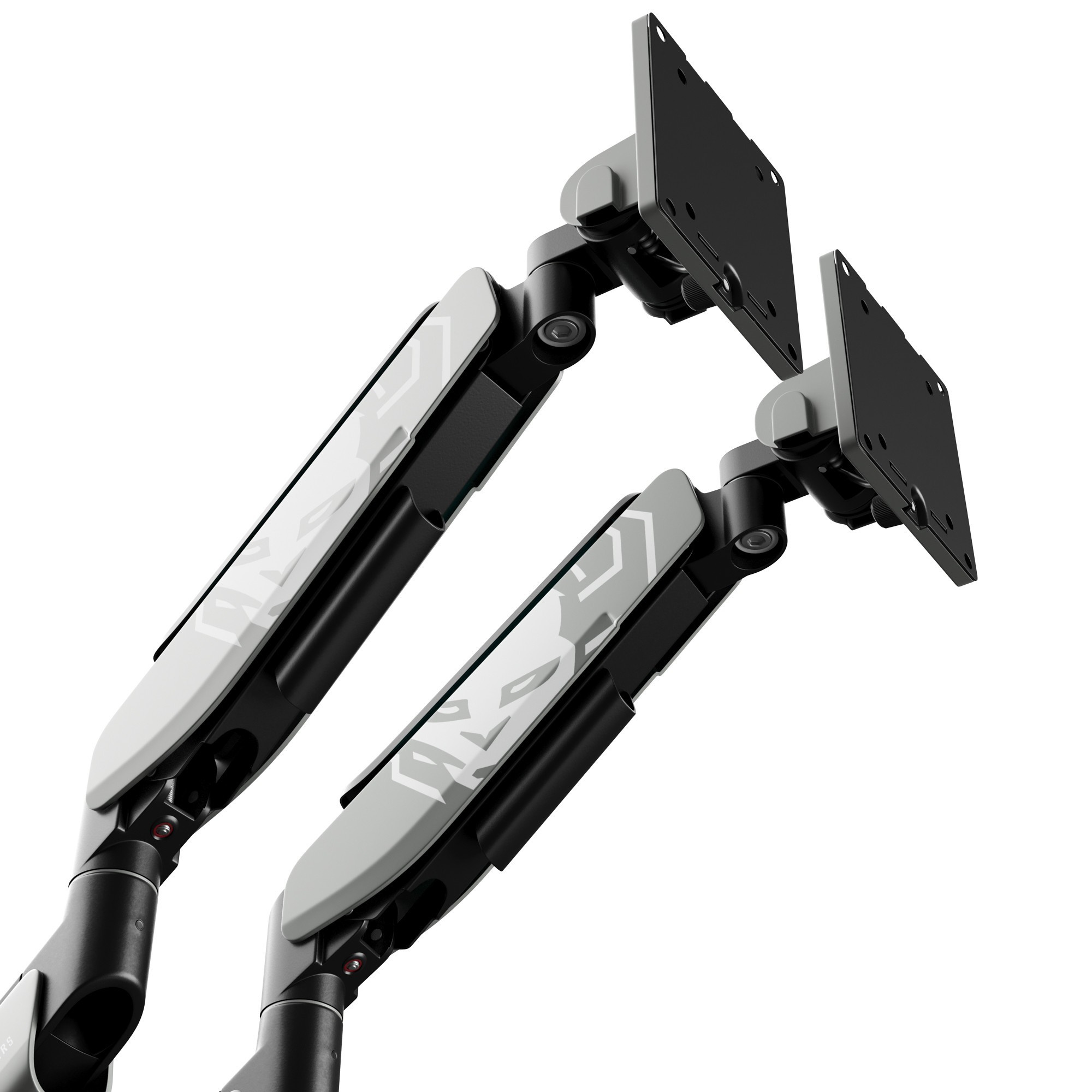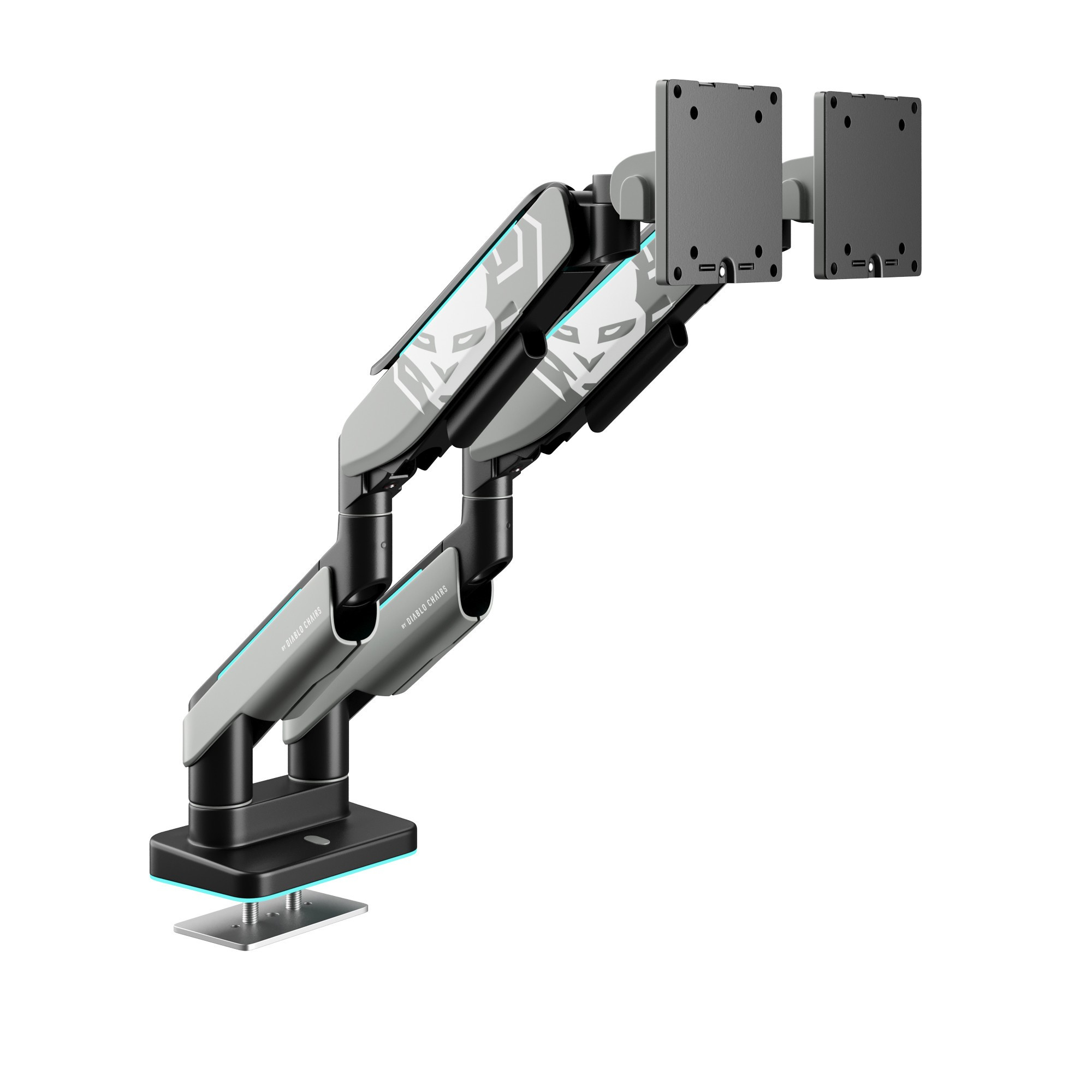RGB X-Arm Dual se pyšní elegantním a minimalistickým designem, který se hodí do každého moderního interiéru. Kombinace šedé a černé barvy dodává držáku sofistikovaný vzhled, který podtrhne váš herní nebo pracovní styl. Kromě toho je držák vyroben z kvalitních materiálů, které zaručují jeho dlouhou životnost a odolnost. Nosnost až 20 kg na každé rameno zaručuje, že držák bez problémů udrží i ty největší a nejtěžší monitory.