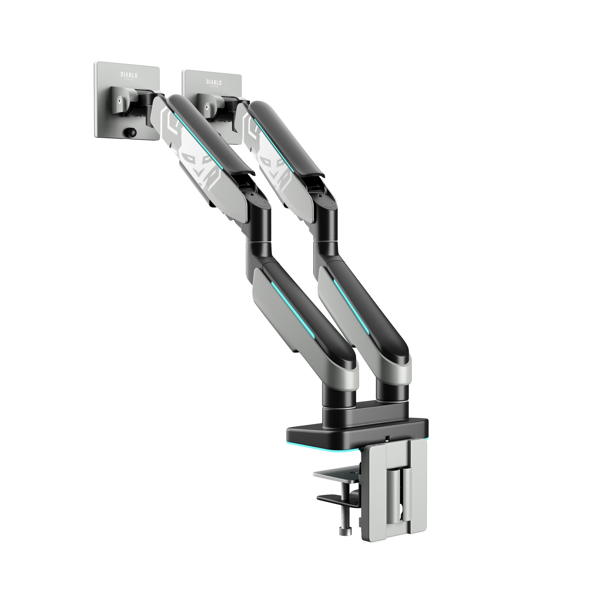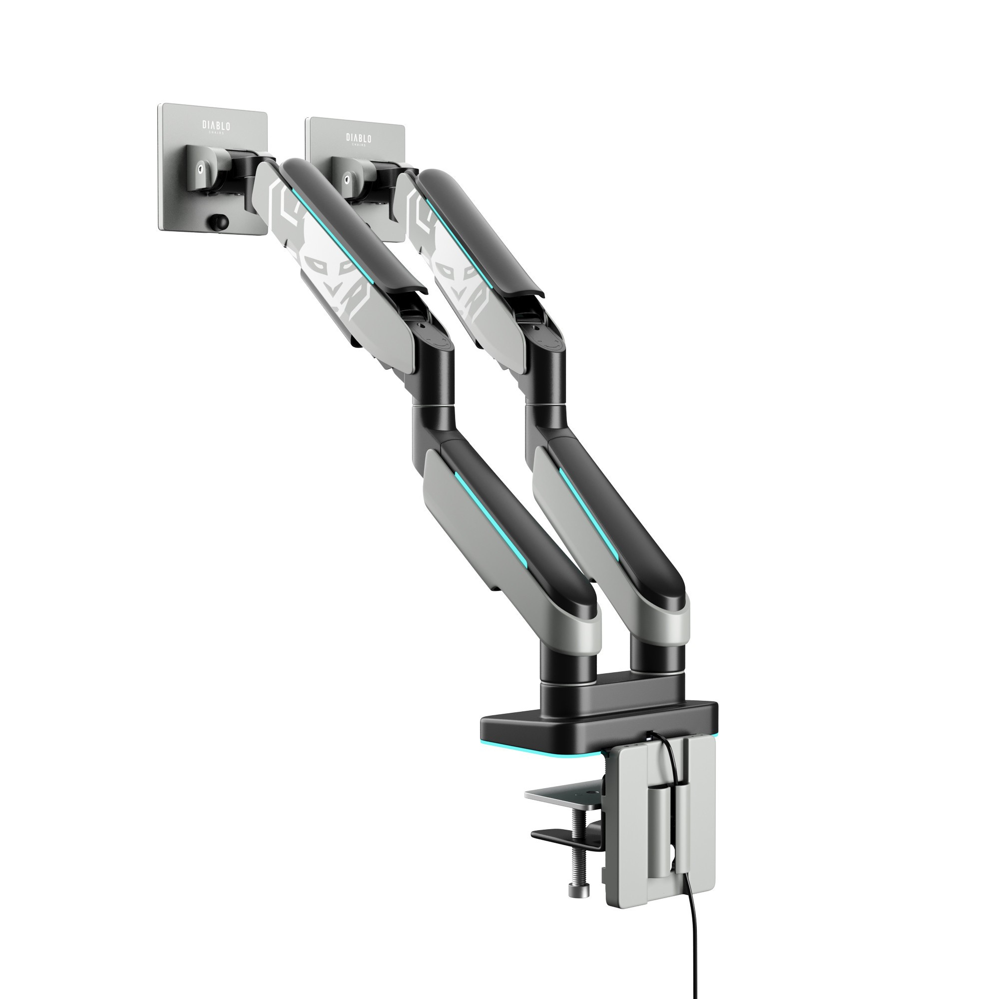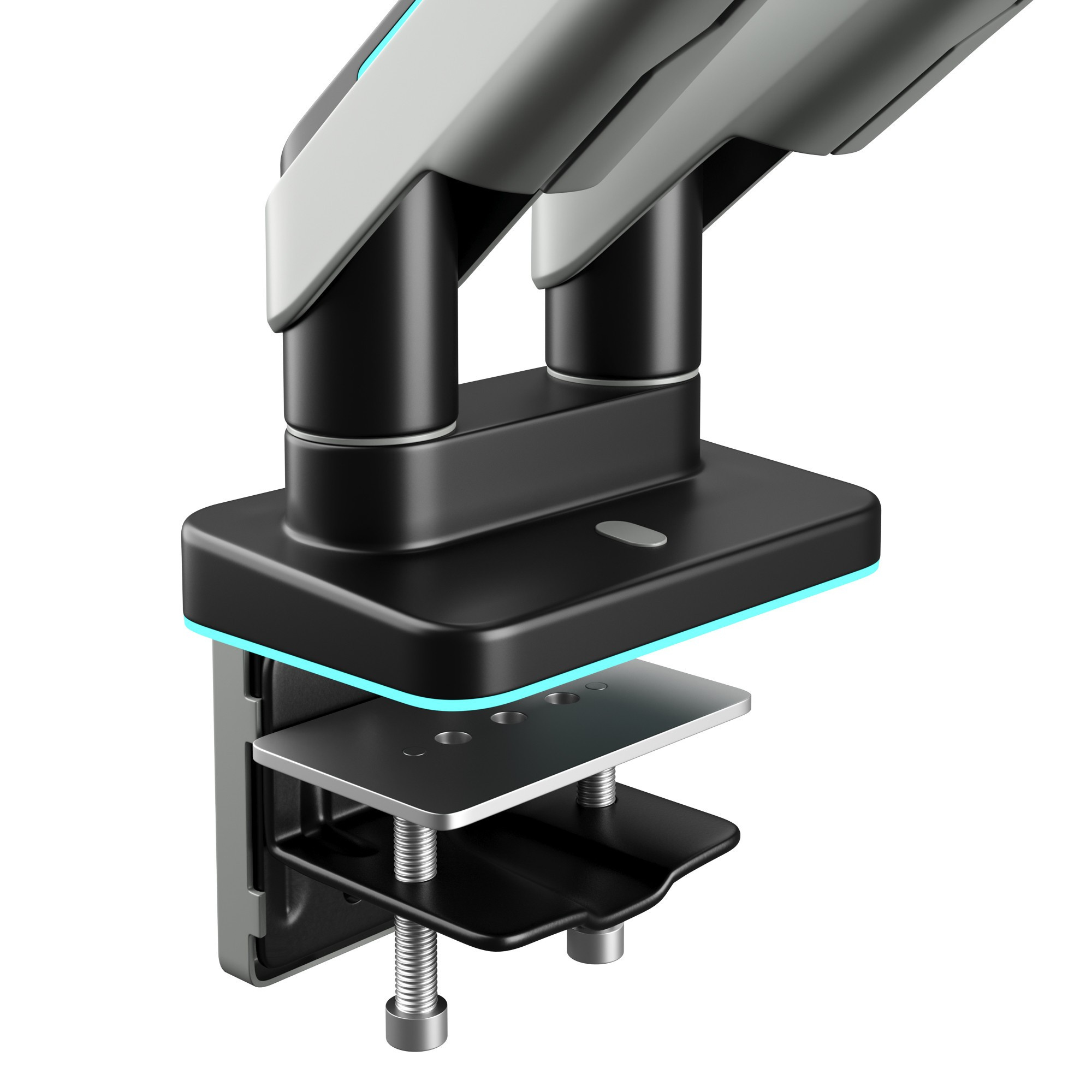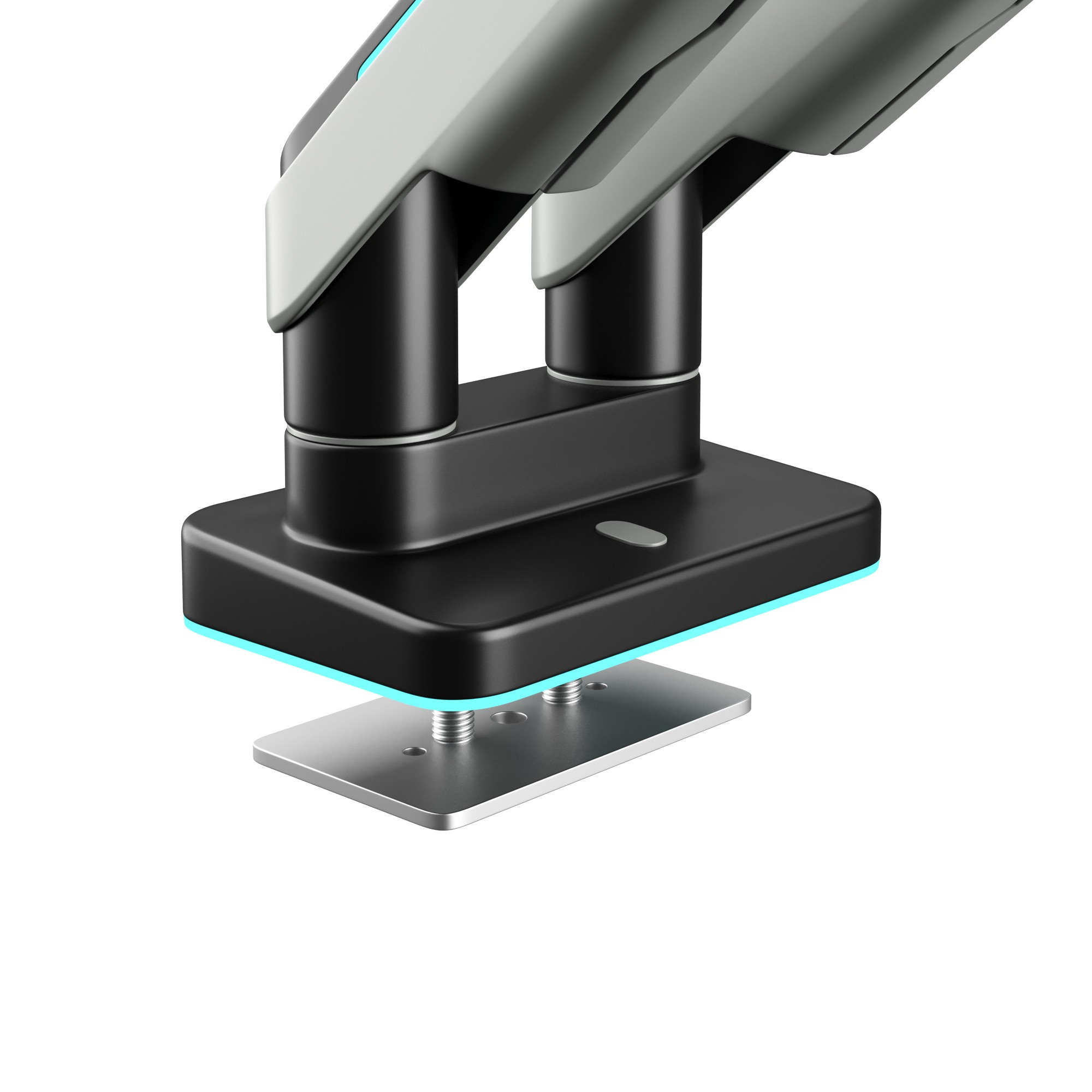 RGB X-Arm Dual se pyšní elegantním a minimalistickým designem, který se hodí do každého moderního interiéru. Kombinace šedé a černé barvy dodává držáku sofistikovaný vzhled, který podtrhne váš herní nebo pracovní styl. Kromě toho je držák vyroben z kvalitních materiálů, které zaručují jeho dlouhou životnost a odolnost. Nosnost až 20 kg na každé rameno zaručuje, že držák bez problémů udrží i ty největší a nejtěžší monitory.