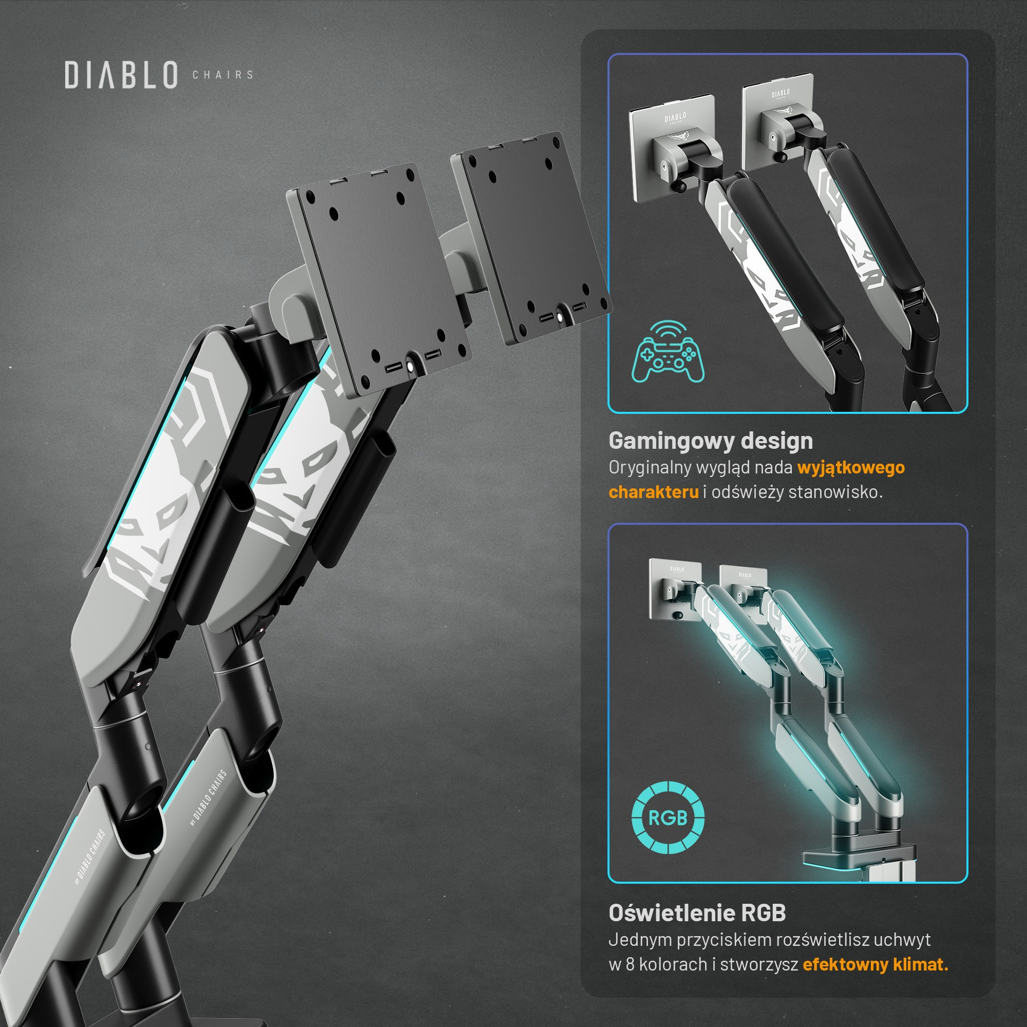 RGB X-Arm Dual je ideálním doplňkem pro vaše herní stanoviště. V kombinaci s herní židlí a stolem od Chairs si vytvoříte dokonalé prostředí pro maximální herní zážitek. Investujte do svého zdraví a pohodlí a užijte si hodiny zábavy bez bolesti a únavy.