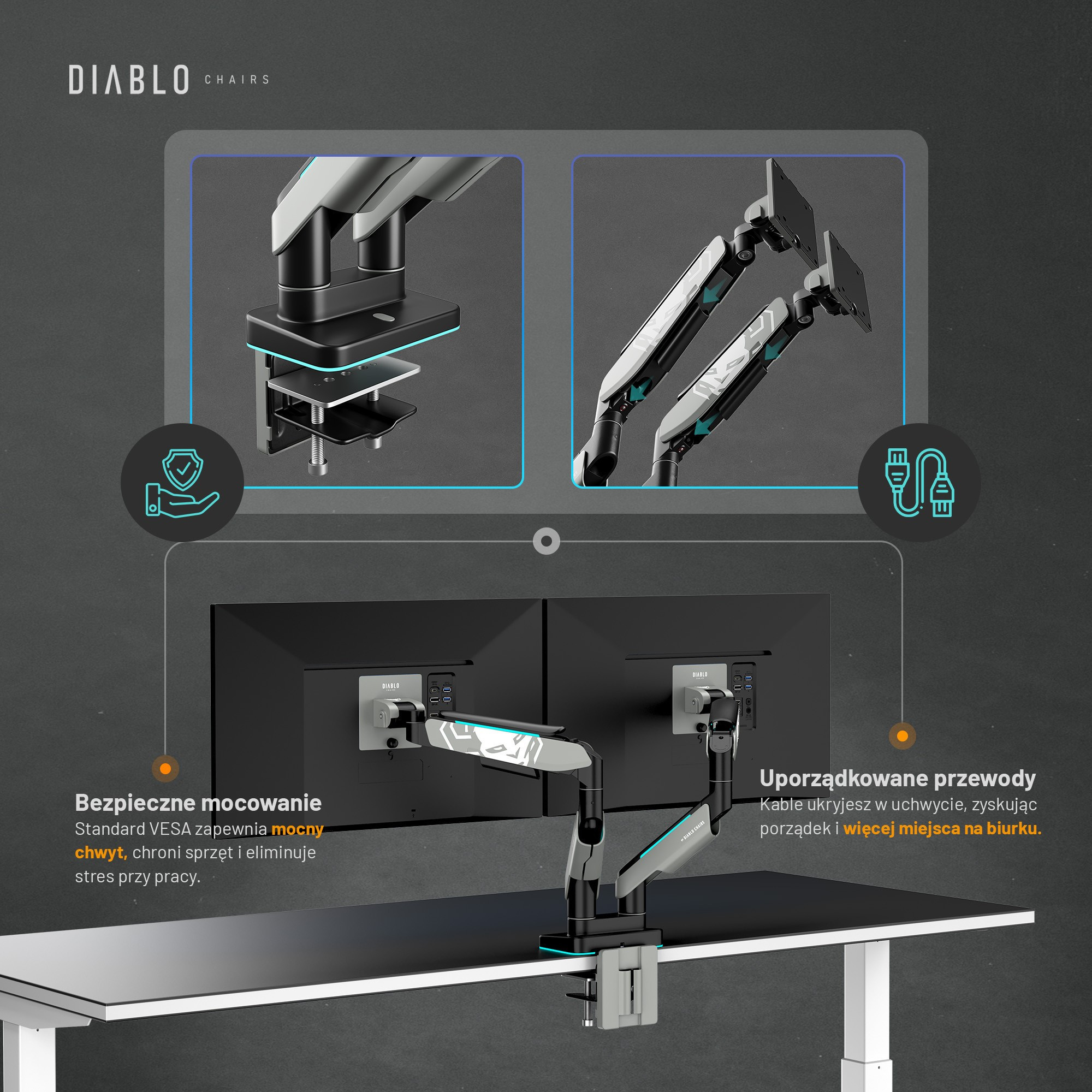 Představte si, jak se váš stůl promění v oázu klidu a pořádku. S RGB X-Arm Dual získáte nejen ergonomický držák na monitory, ale také praktické řešení pro správu kabelů. Uspořádejte si svůj stůl a užijte si maximální komfort a efektivitu.