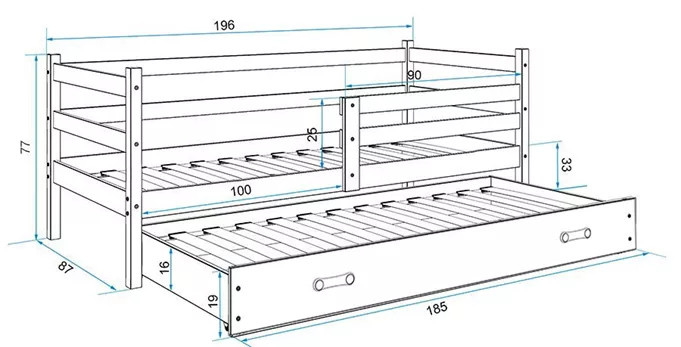 Dětská postel ERYK s přistýlkou 80x190 cm, bez matrace, Grafit/Bílá