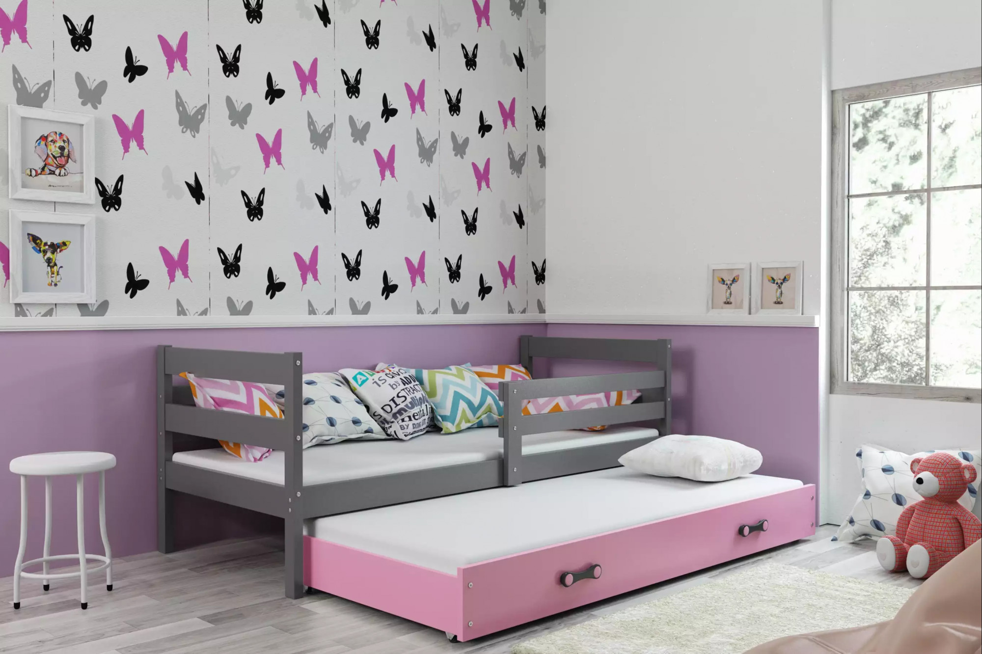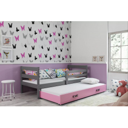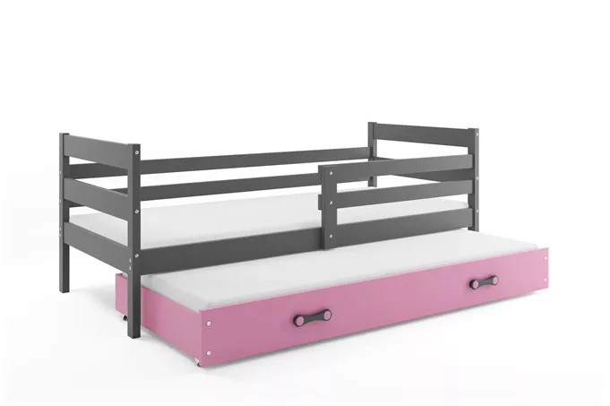 Dětská postel ERYK s přistýlkou 90x200 cm, bez matrace, Grafit/Růžová