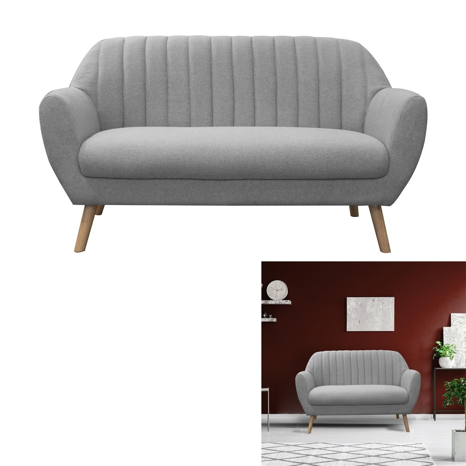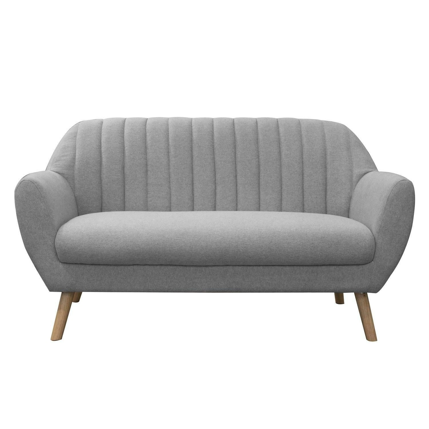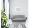 Dvojsedačka ozdobená šedou látkou s vertikálním prošíváním se hodí do menšího obývacího pokoje nebo čekárny v salonu krásy. Sedačka ideálně podtrhne skandinávský styl v interiéru. Sedačka není rozkládací. Nohy pohovky z masivního kaučukového dřeva v přírodní barvě. Pohodlné, široké područky podpírají naše ruce a umožňují pohodlně se posadit. Sofa o hmotnosti 19,5 kg byla vybavena čalounickou pěnou ozdobenou šedou tkaninou. Tloušťka pěny 28 kg/m3.