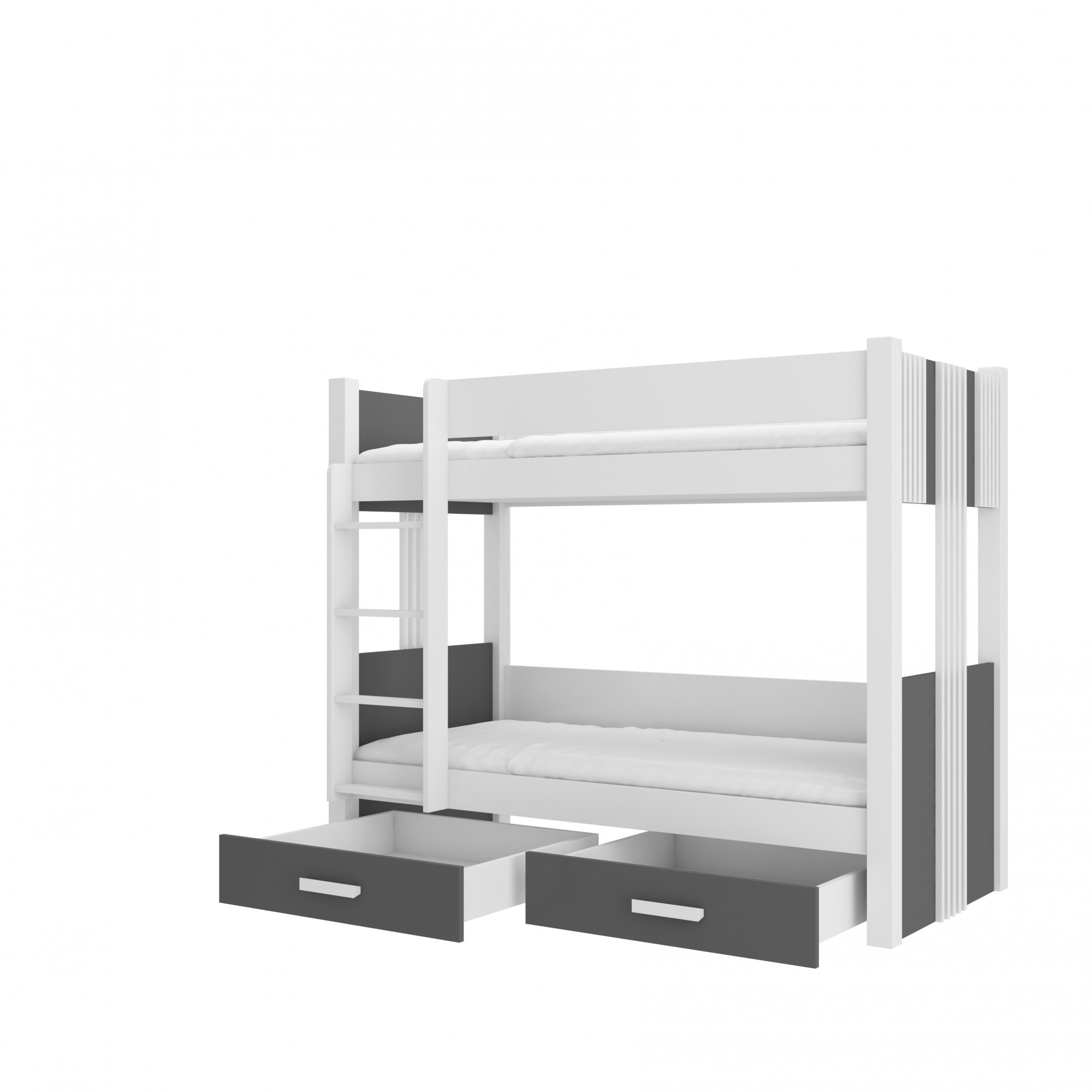 Dvoulůžková patrová postel s matracemi ARTA 200x90 Bílá+Antracit
