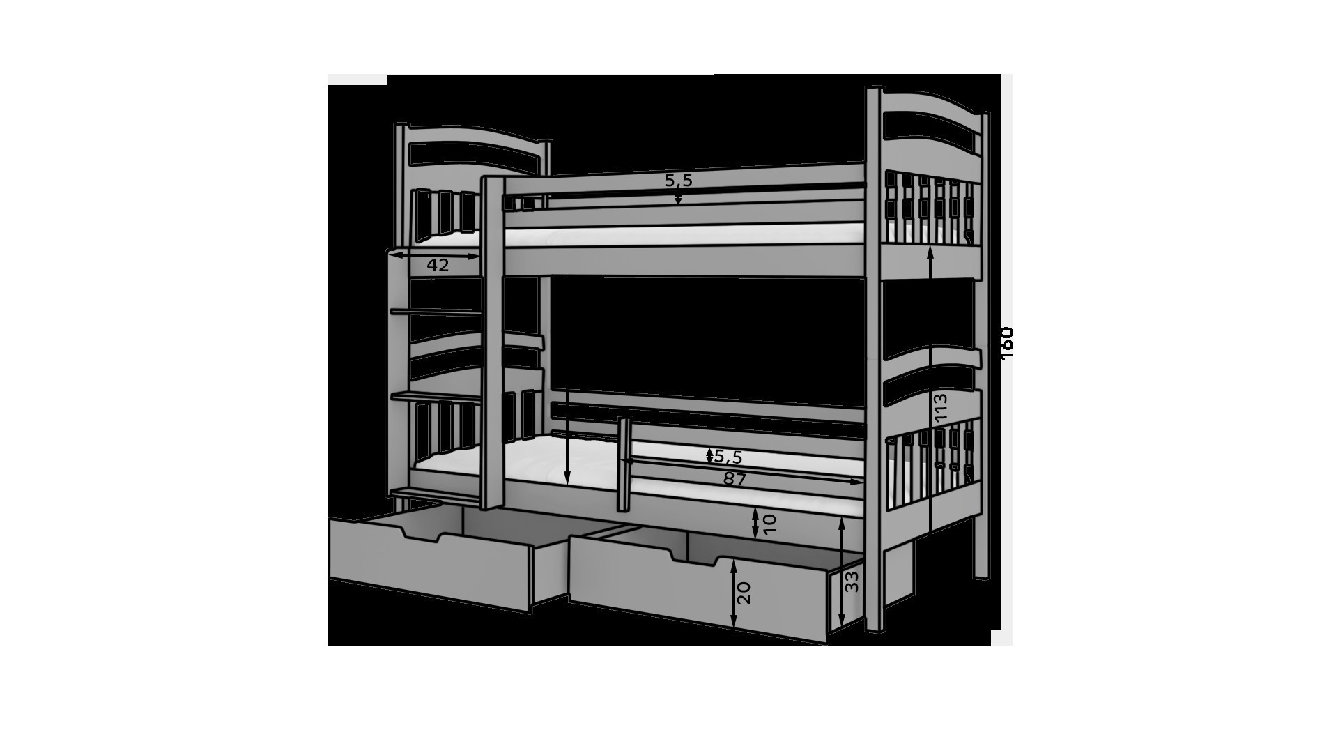 Dvoulůžková patrová postel s matracemi ADA 180x80 Grafit