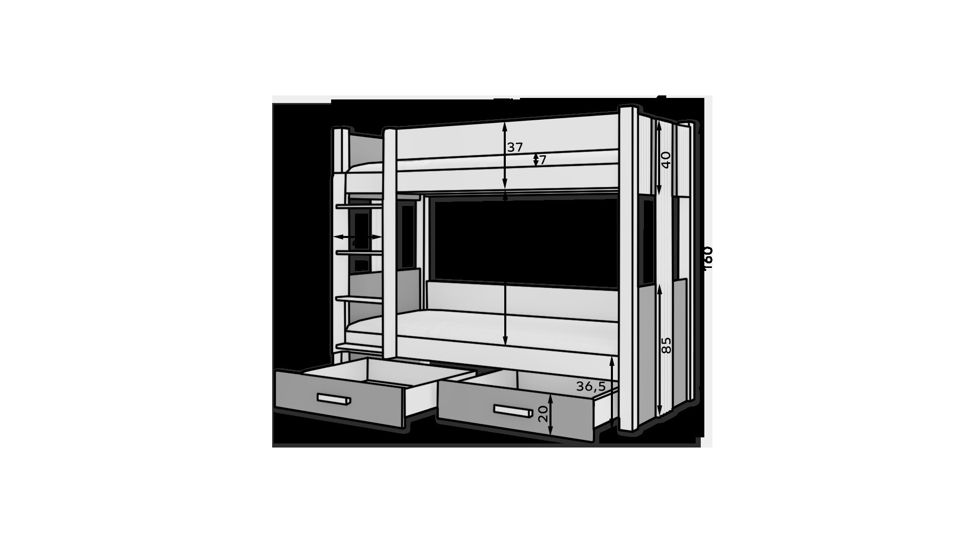 Patrová 2-osobová postel ARTA je skvělý nápad na úsporu místa v malém dětském pokoji. Nábytek má schůdkový žebřík a dvě prostorné a funkční zásuvky na ložní prádlo. Spolu s postelí obdržíte sadu pěnových matrací.