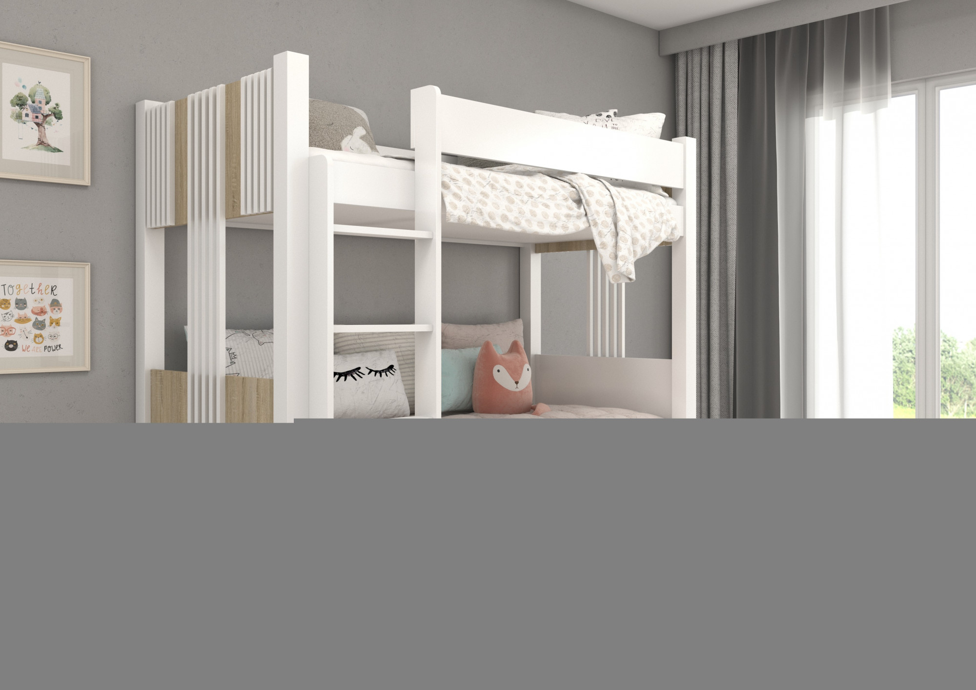 Dvoulůžková patrová postel s matracemi ARTA 200x90 Bílá+Sonoma