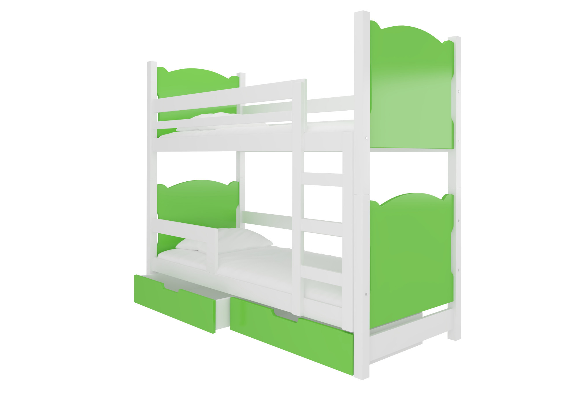 Dvoulůžková patrová postel s matracemi MARABA White+Green