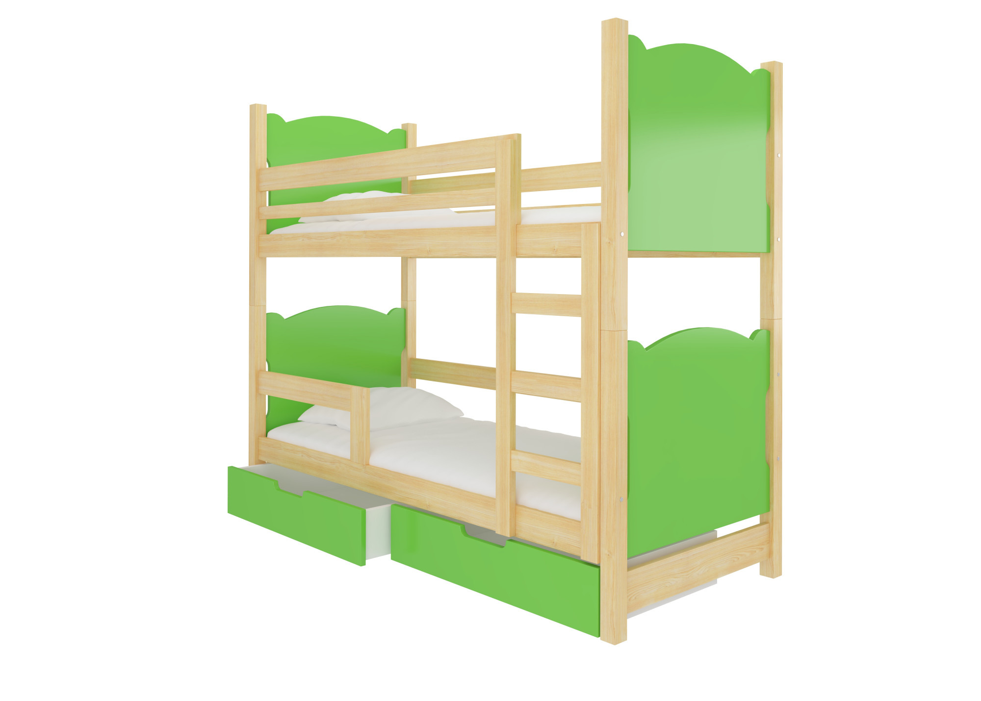 Dvoulůžková patrová postel s matracemi MARABA Pine+Green