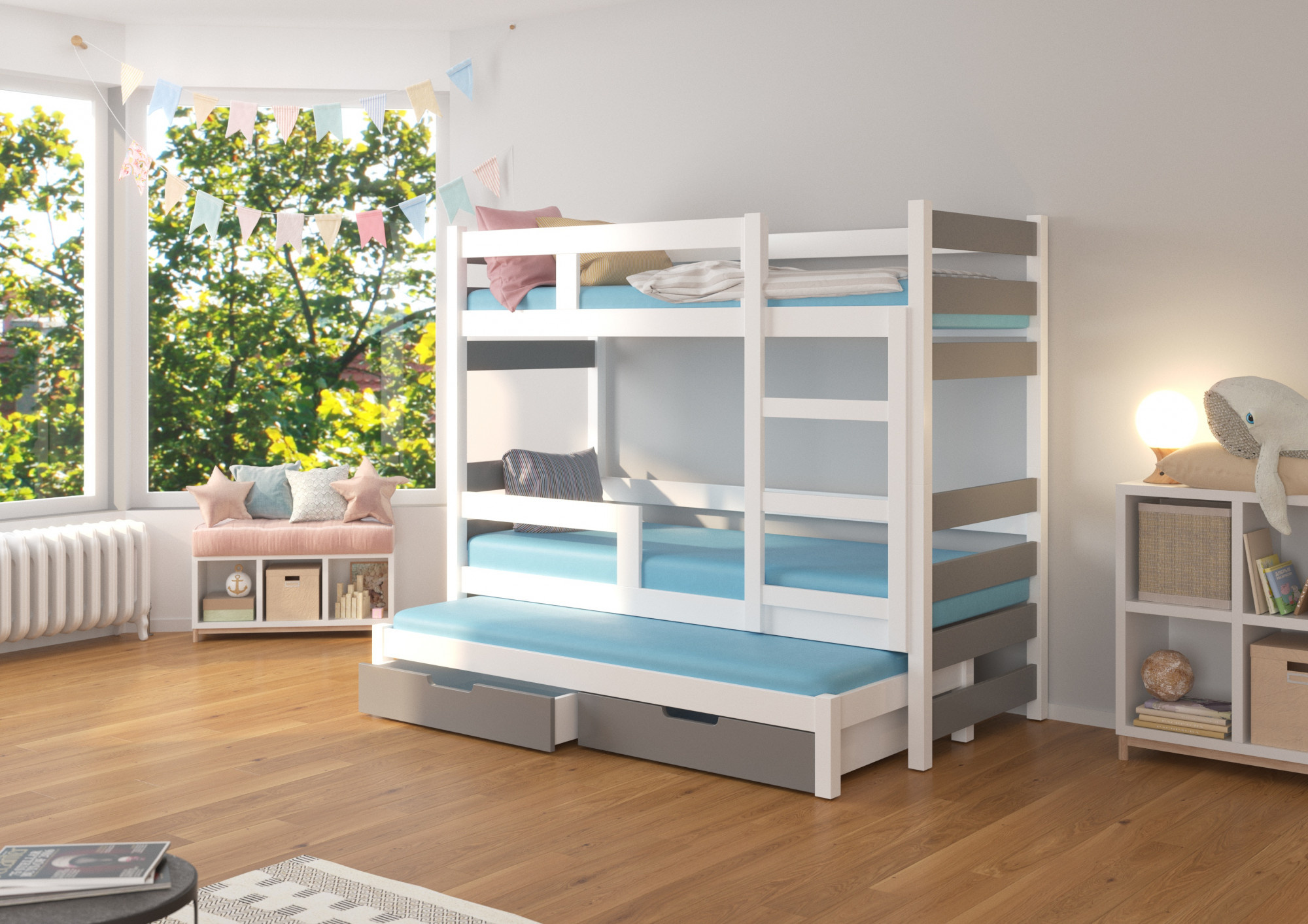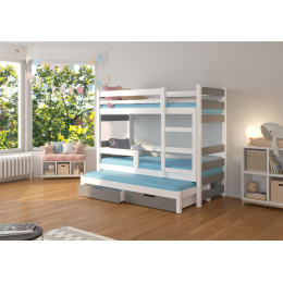Třílůžková patrová postel s matracemi KARLO White+Gray