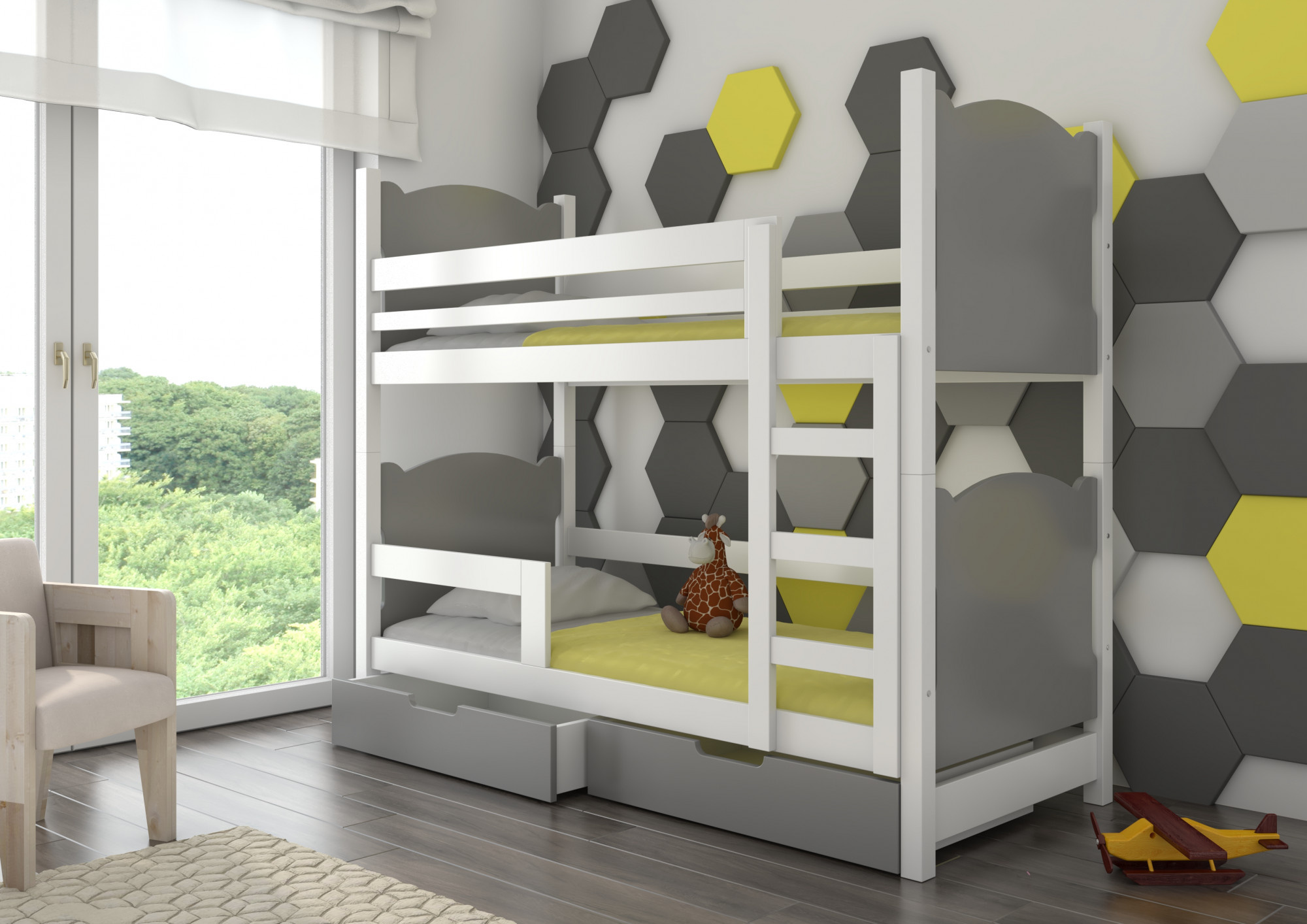 Dvoulůžková patrová postel s matracemi MARABA White+Gray