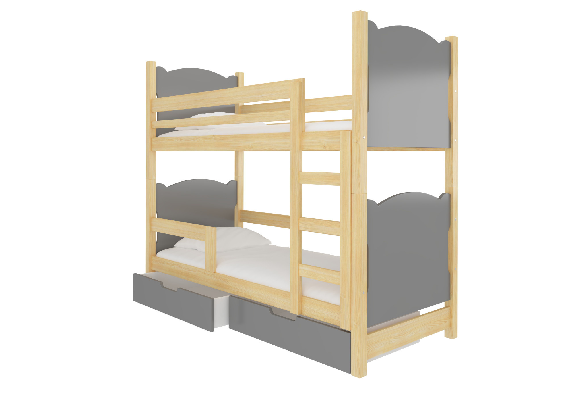 Dvoulůžková patrová postel s matracemi MARABA Pine+Gray