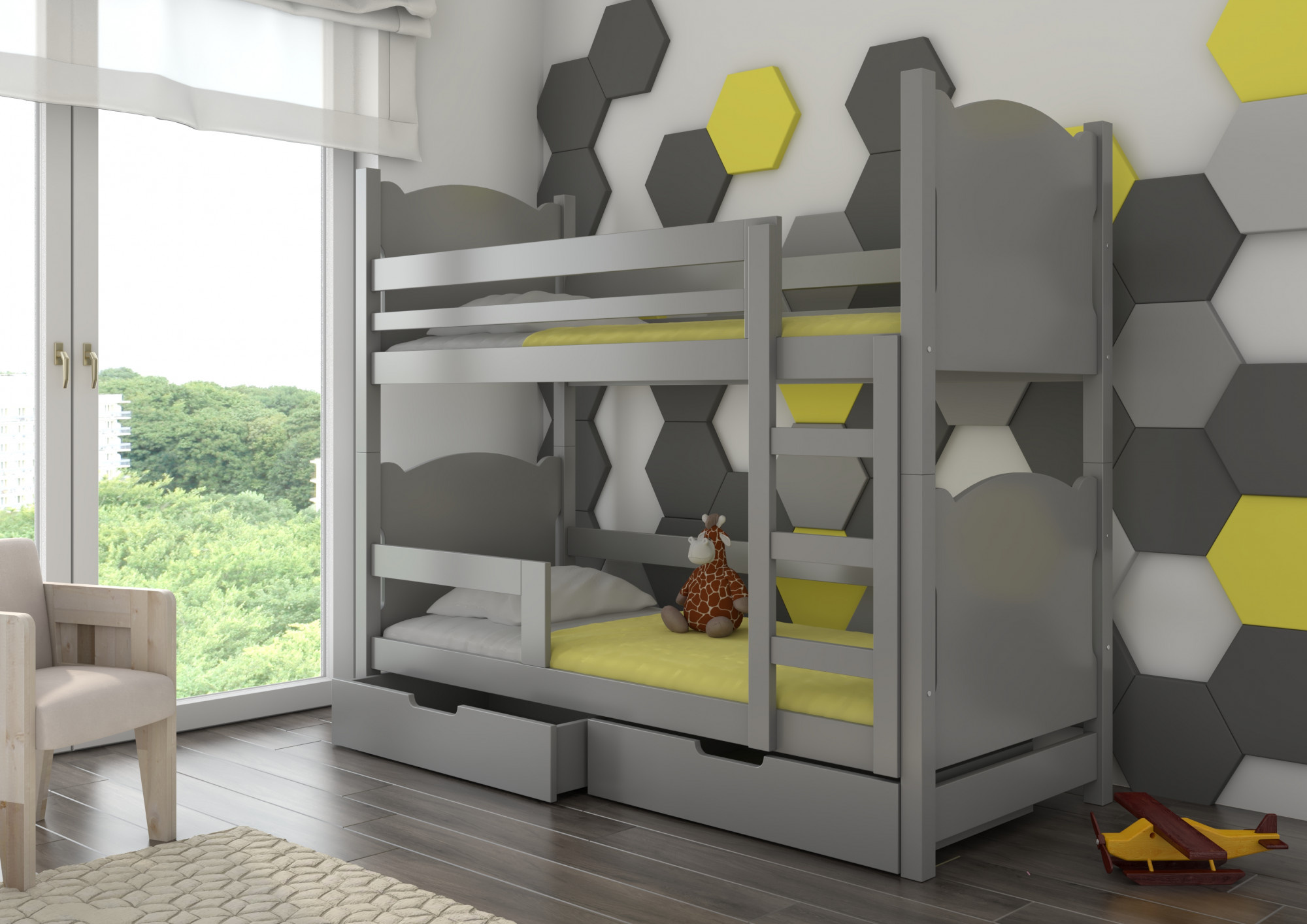 Dvoulůžková patrová postel s matracemi MARABA Gray
