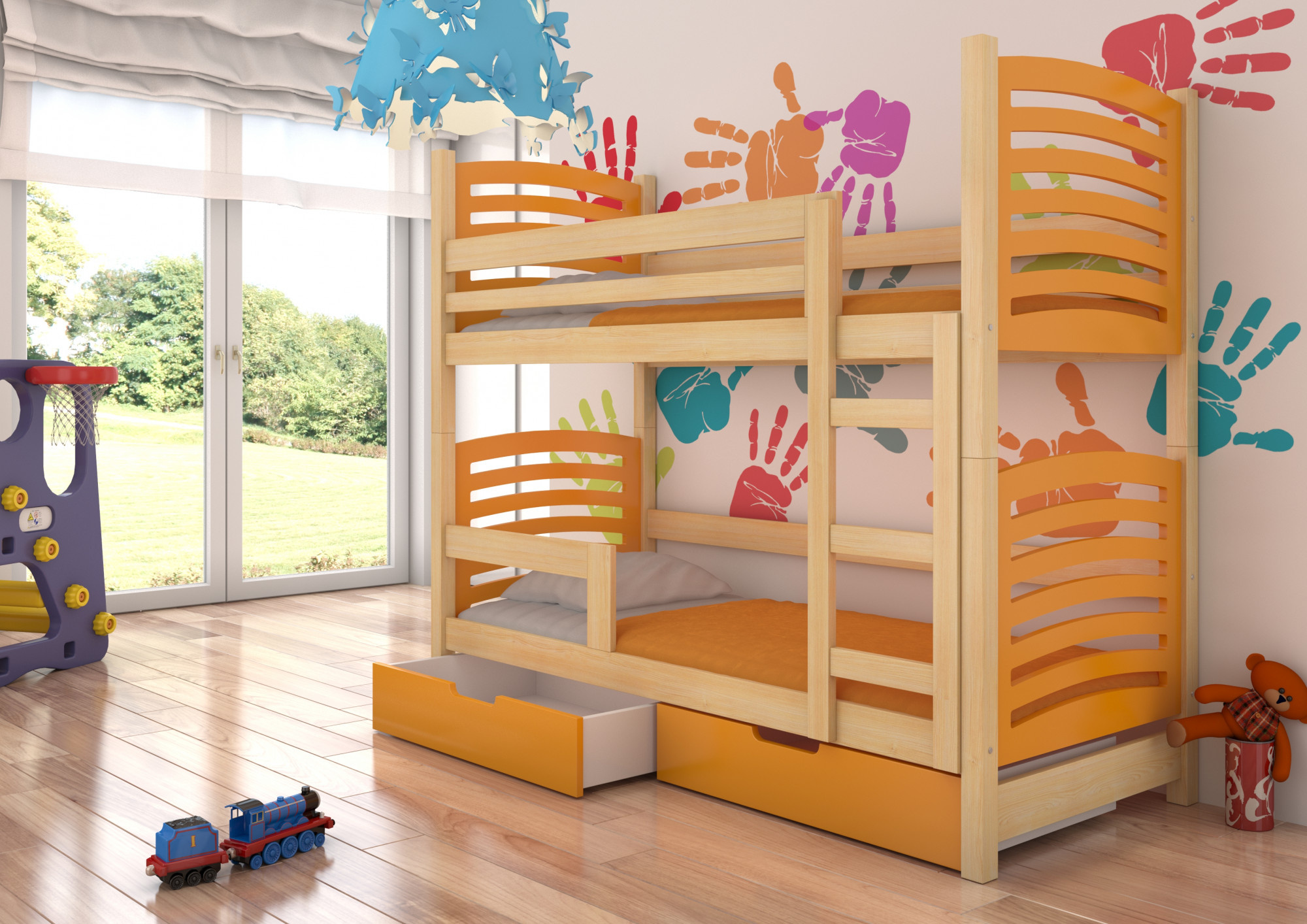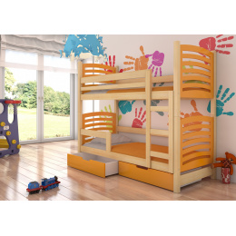Dvoulůžková patrová postel s matracemi OSUNA Pine+Orange
