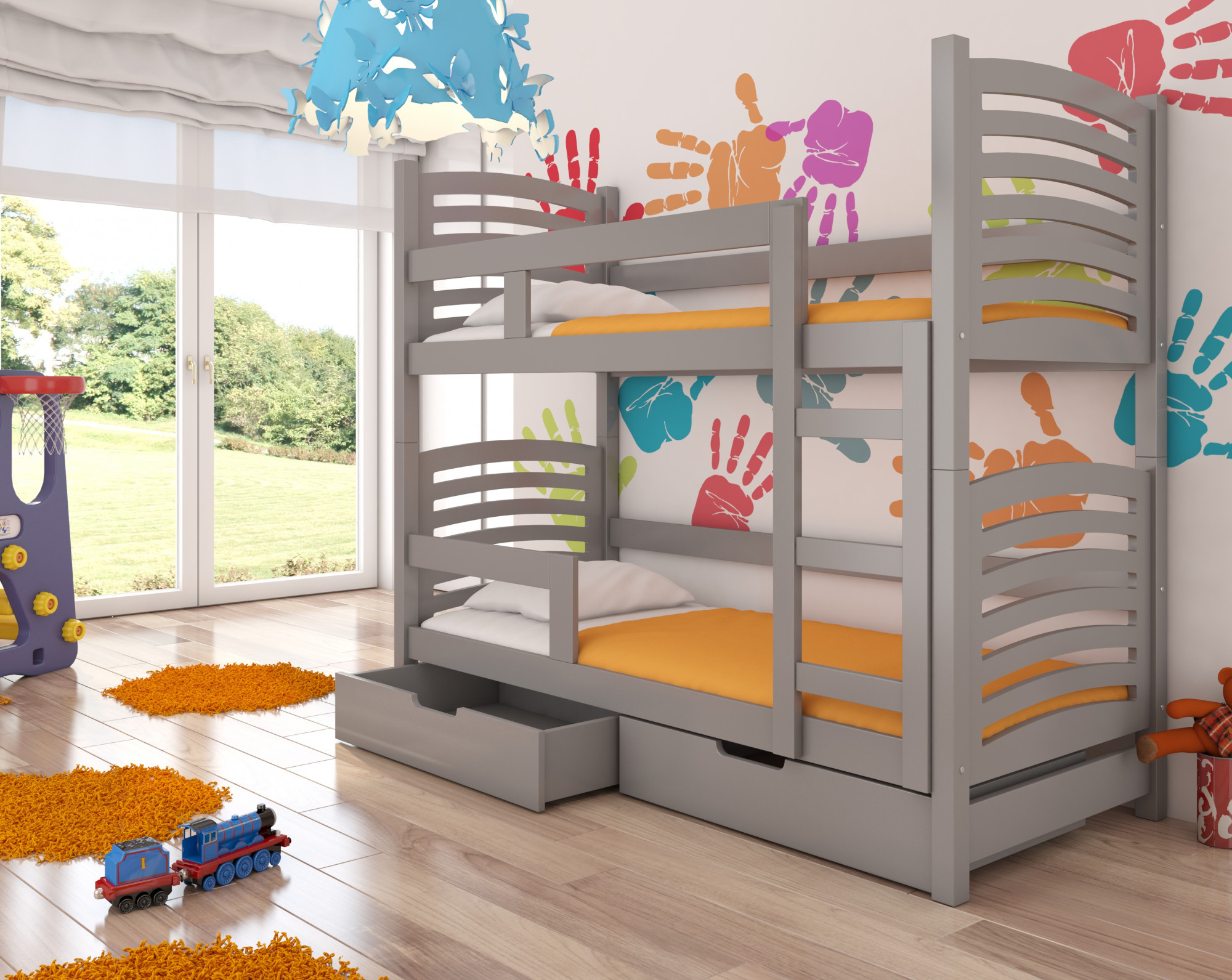 Dvoulůžková patrová postel s matracemi OSUNA Gray