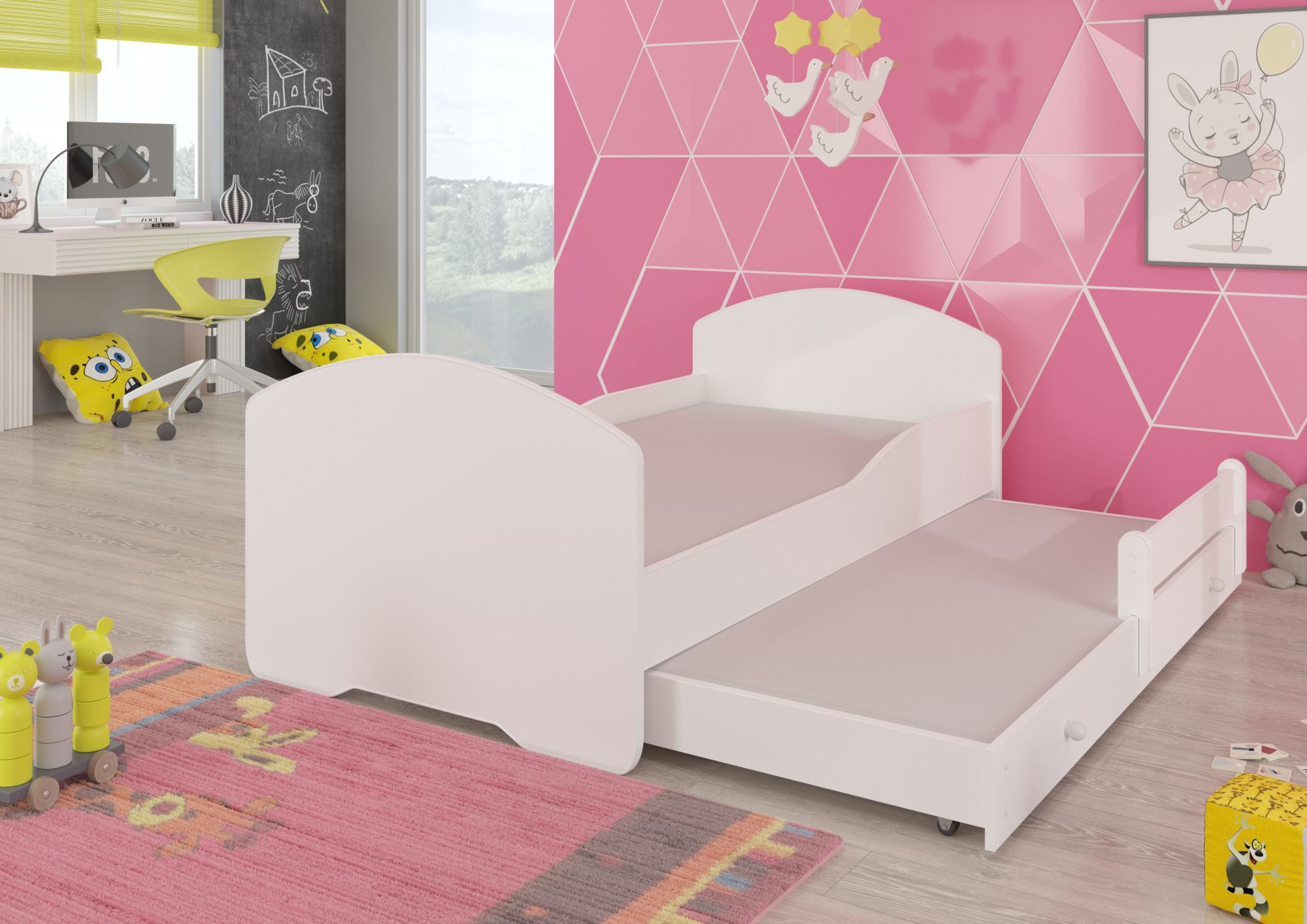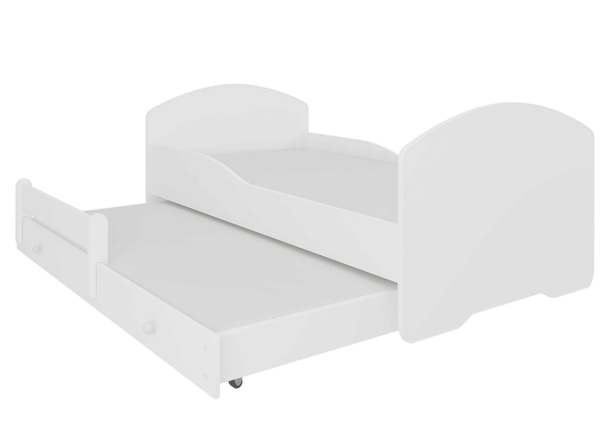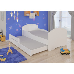 Dvojlůžko z kolekce PEPE II s jednoduchým tvarem má zásuvku s funkcí spaní, která se skvěle hodí do pokoje pro dva sourozence. Je také ideálním řešením pro návštěvu nečekaných hostů. Díky velkému výběru grafik snadno vybereš model, který nejlépe odpovídá zájmům tvého dítěte. V procesu výroby byly použity ekologické vodní barvy, které jsou bezpečné a odolné vůči mechanickému poškození. Navíc postel nemá ostré rohy a grafika je chráněna laminátem. Další výhodou je snímatelný potah matrace na zip, který lze snadno sundat a vyprat. Co více, postel lze vybavit ochrannou zábranou zajišťující bezpečnost během spánku.
