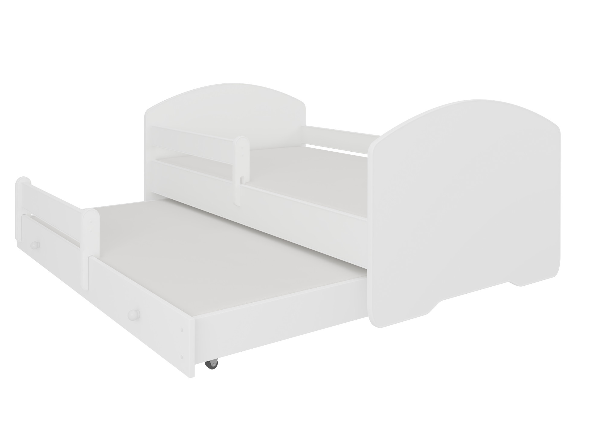 Dvojlůžko z kolekce PEPE II s jednoduchým tvarem má zásuvku s funkcí spaní, která se skvěle hodí do pokoje pro dva sourozence. Je také ideálním řešením pro návštěvu nečekaných hostů. Díky velkému výběru grafik snadno vybereš model, který nejlépe odpovídá zájmům tvého dítěte. V procesu výroby byly použity ekologické vodní barvy, které jsou bezpečné a odolné vůči mechanickému poškození. Navíc postel nemá ostré rohy a grafika je chráněna laminátem. Další výhodou je ochranná zábrana zajišťující bezpečnost během spánku a snímatelný potah matrace na zip, který lze snadno sundat a vyprat.