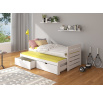 Dvojitá postel TOMI je ideálním řešením v pokoji pro dva sourozence. Dokonale se osvědčí také v případě návštěvy nečekaných hostů. Model je dostupný ve dvou velikostech a v mnoha barvách, které se hodí do každého uspořádání. Postel má dvě praktické a funkční zásuvky na ložní prádlo a odolný a pevný rám vyrobený z borovicového dřeva. Spolu s postelí obdržíš sadu pěnových matrací o tloušťce 8 cm.