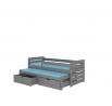 Dvojlůžko s bariérkou a matracemi TOMI 180x80 Šedé