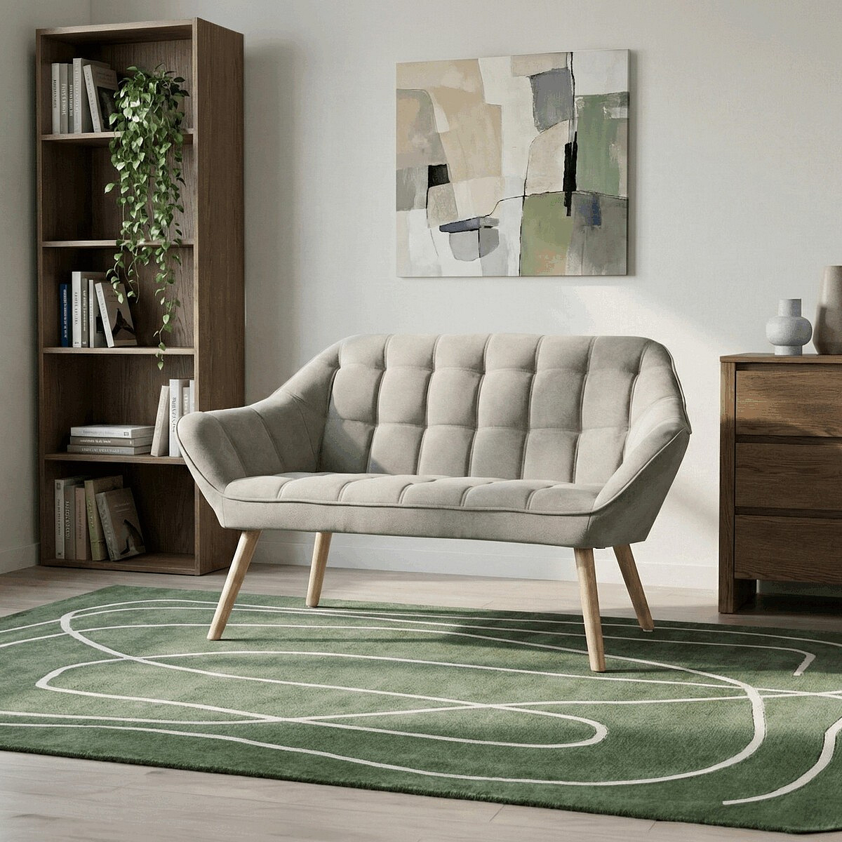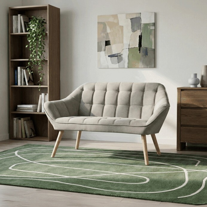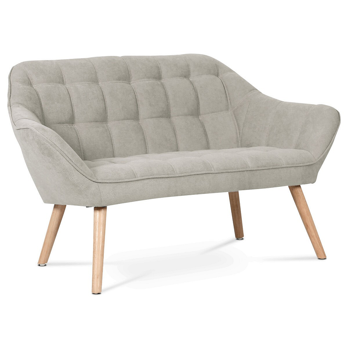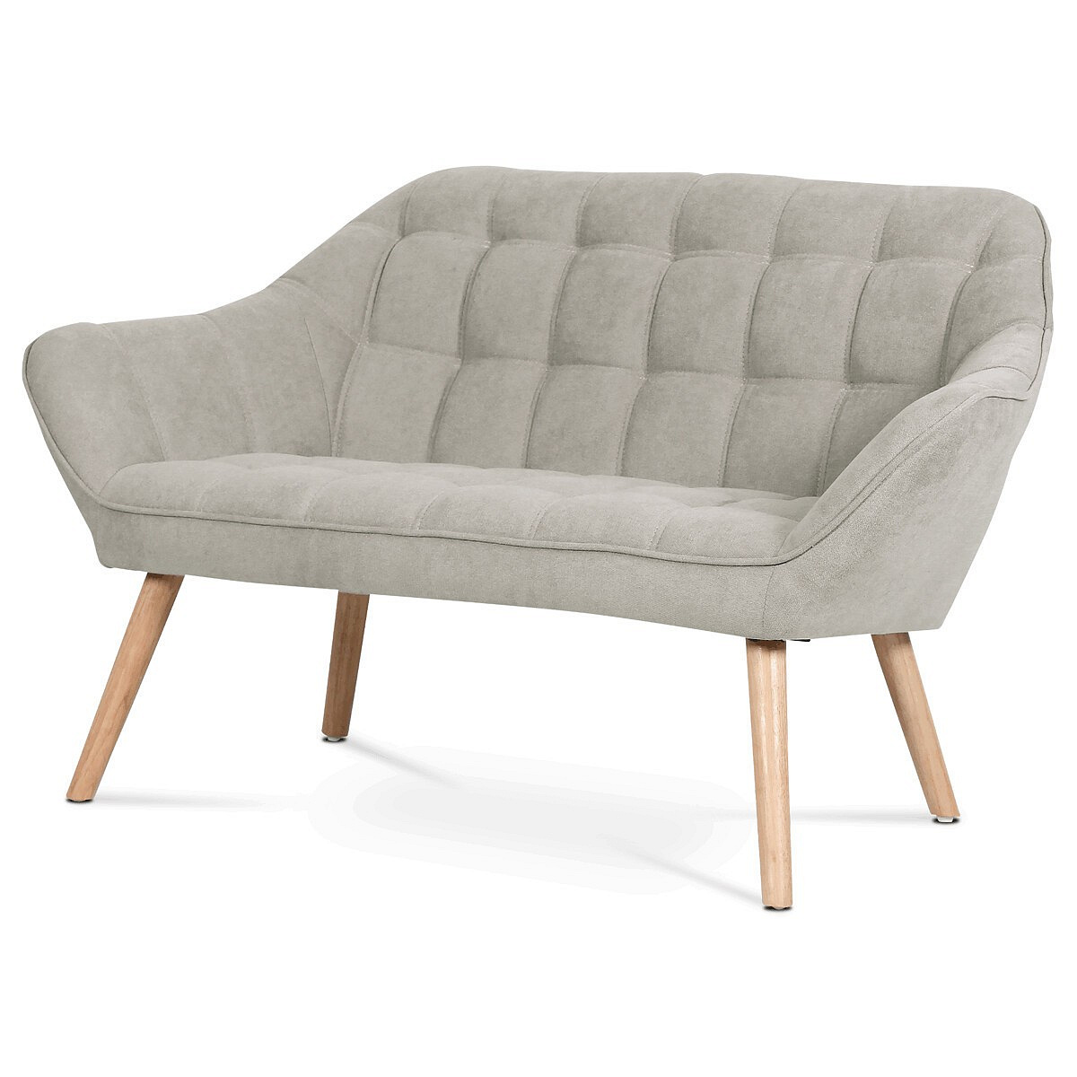 Dvoumístná sedačka AK-322 SIL2 nabízí pohodlné posezení díky kvalitnímu čalounění z šedobéžové látky s designovým prošitím, které dodává celku moderní a stylový vzhled. Pevné nohy z masivního kaučukovníku zajišťují stabilitu a dlouhou životnost, přičemž jejich přírodní dřevěný odstín kontrastuje s jemným tónem potahu. Sedačka je navržena tak, aby poskytovala komfort i estetickou hodnotu v menších obytných prostorech či recepcích. Její rozměry a konstrukce umožňují snadné umístění a zároveň dostatek prostoru pro dvě osoby. Díky kombinaci kvalitních materiálů a precizního zpracování je vhodná pro každodenní užívání.