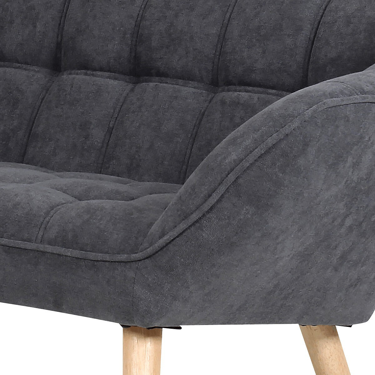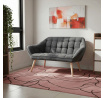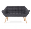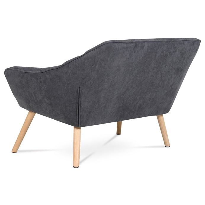 Dvoumístná sedačka v skandinávském stylu s kubistickými prvky. Charakteristickými prvky této dvojsedačky je výrazné čtvercové prošití sedáku i opěráku, masivní sedací korpus s ostrými liniemi v kontrastu s vysokými štíhlými nohami. Sedačka je celočalouněná, včetně zad. Lze ji použít jak k přisazení ke stěně, tak i ve středu místnosti. Může sloužit jako výrazný solitér, nebo s křesly jako sedací souprava. Své uplatnění najde v chodbě, hale, obývacím pokoji i ložnici. Potah je z látky v tmavě šedém odstínu, kostra z masivního dřeva, vyplněné je kvalitní PU pěnou. Sedáky jsou ještě zpevněny elastickými popruhy pro zvýšení komfortu pohodlí. Štíhlé kónické nohy jsou z masivního kaučukovníku v přírodním odstínu a lakované transparentním lakem. Poškození podlahových krytin je eliminováno plastovými kluzáky, u zadních nohou jsou rektifikovatelné (výškově nastavitelné). Světlá výška sedačky je 30 cm , výška područek je 59 cm a šíře 10 cm. Nosnost je 150 kg. Pohodlí a vnitřní prostornost této sedačky ocení jistě každý. A pokud si ještě opřete ruce o zvýšené područky a nebo si lehnete, budete dlouho otálet, než sedačku opustíte. Sedačka se typově hodí ke křeslu AK-321.