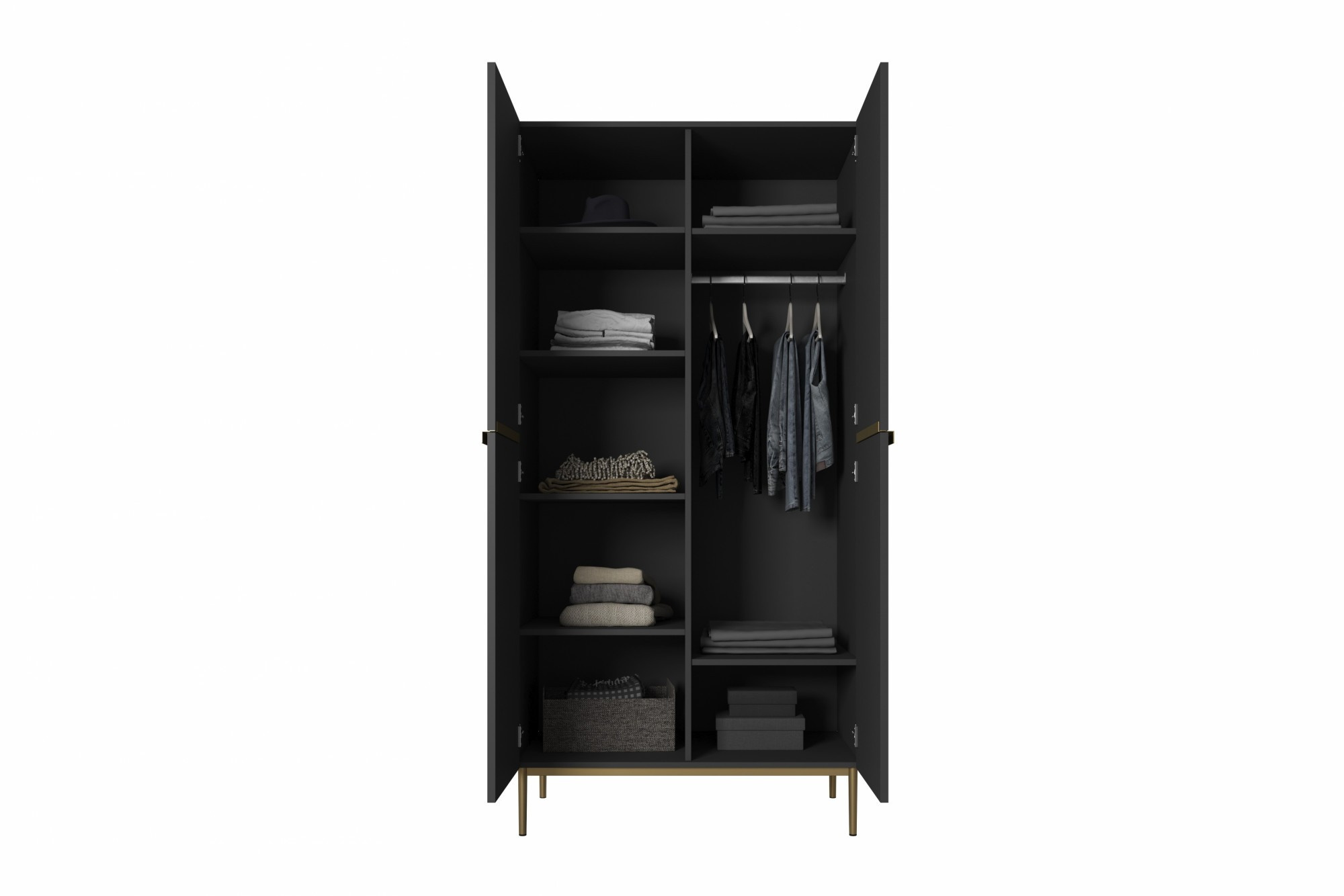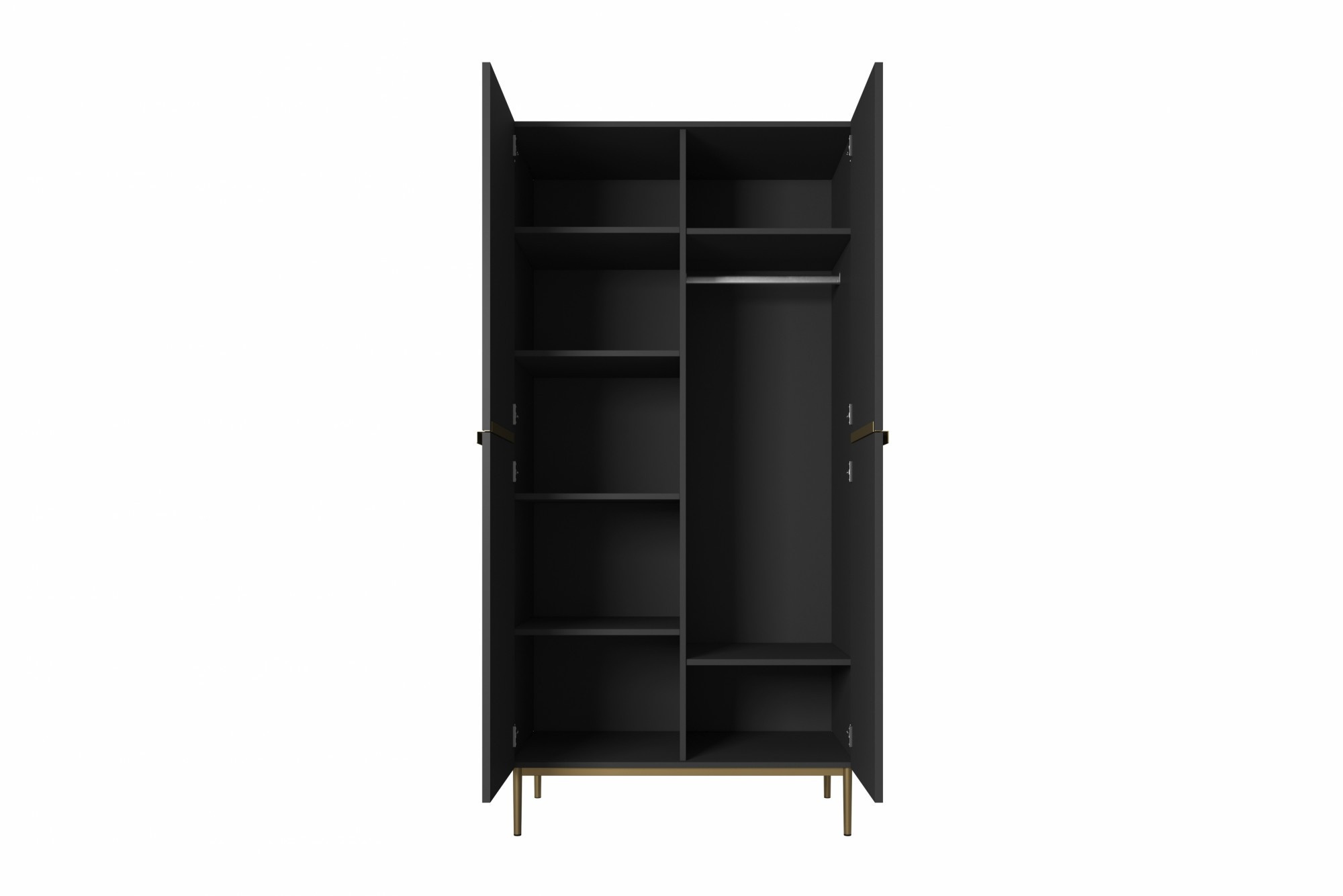 Dvoudveřová skříň Nicole s kovovými nohami a úchyty 100 cm - černý mat / zlaté nožky, Šířka: 100, Výška: 220, Hloubka: 62, Výška nožek: 20, Hloubka desky: , Montáž: