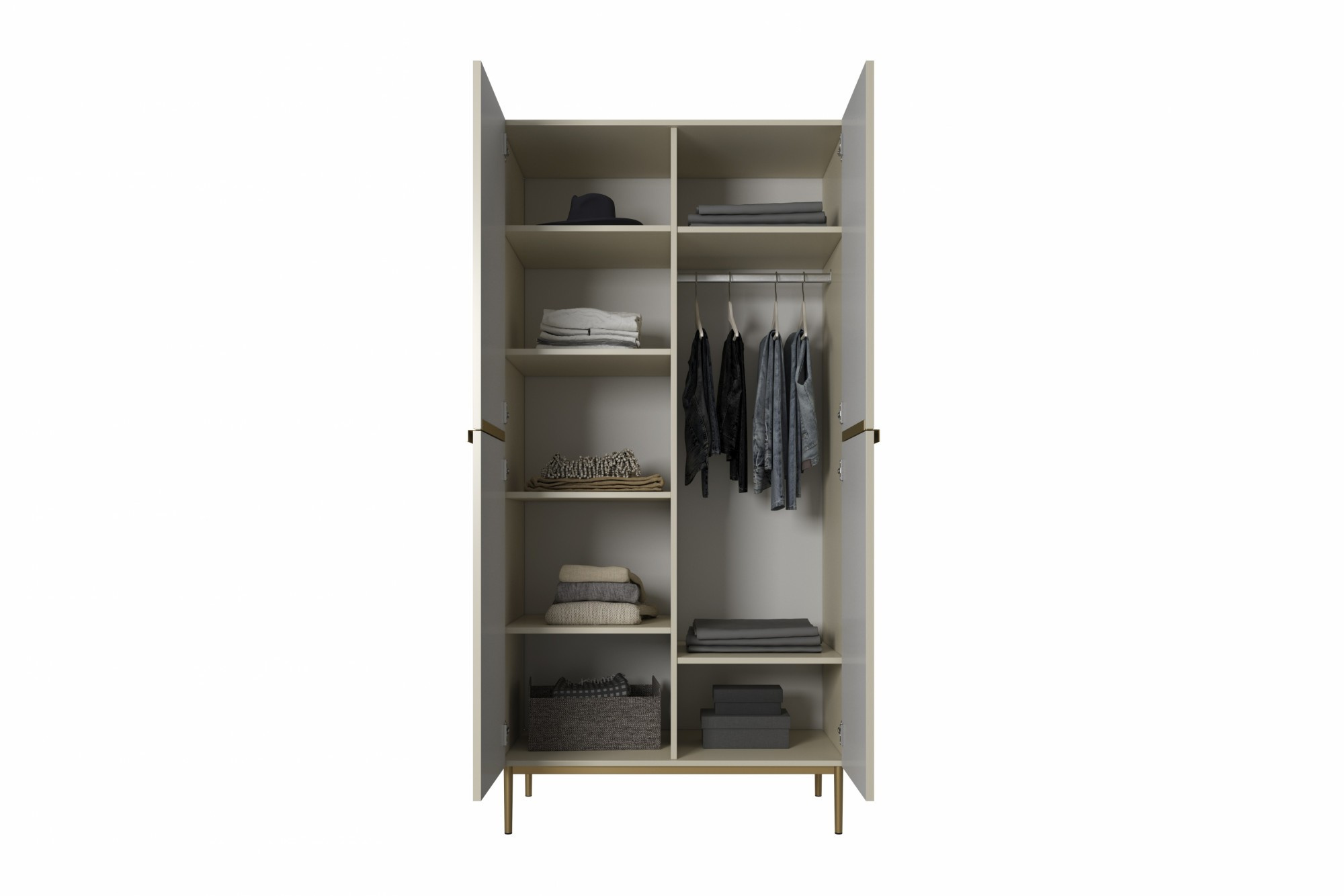 Dvoudveřová skříň Nicole s kovovými nohami a úchyty 100 cm - kašmír / zlaté nožky, Šířka: 100, Výška: 220, Hloubka: 62, Výška nožek: 20, Hloubka desky: , Montáž: